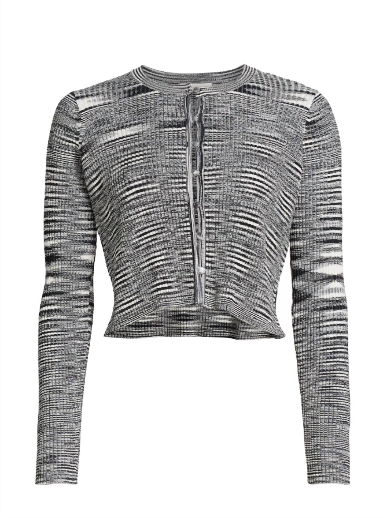 Ramy Brook's Angeline cardigan highlights a roundneck, long sleeves, and covered button-front placket.