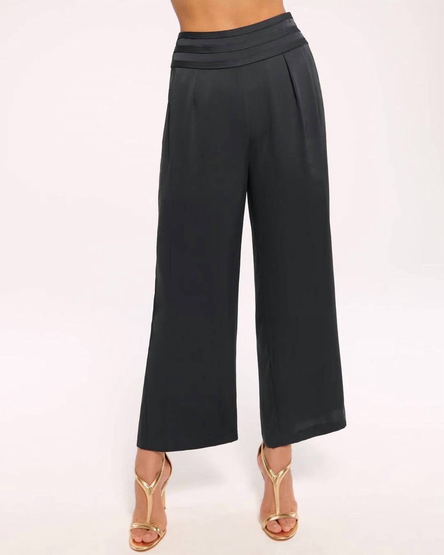 Stay on-trend and showcase your impeccable taste with these adaptable and stylish cropped pants. The perfect length to wear with your favorite mules. You'll love the fit! Elevate your wardrobe with the Cropped Joss Pant by Ramy Brook, a stylish choice in classic black. Designed for women, these solid high-rise pants offer a relaxed fit with a wide-leg style, perfect for workwear or an engagement event. Made from 100% polyester, they feature a convenient pull-on closure. Care for these pants by dry cleaning to maintain their elegant look.