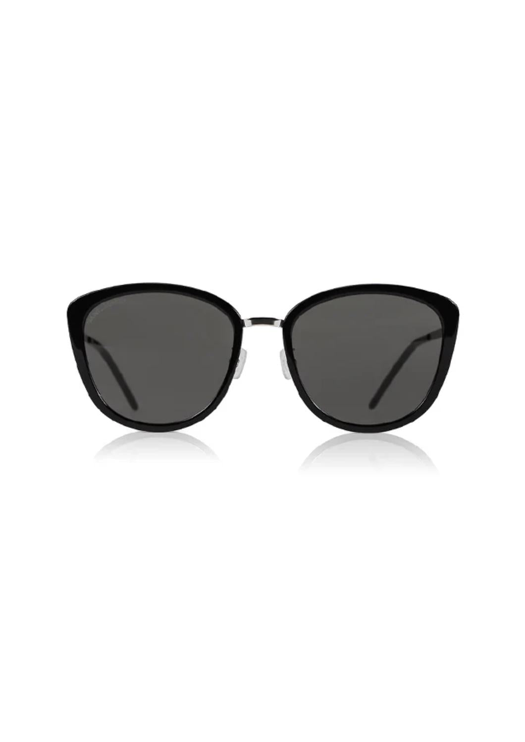 Upgrade your eyewear collection with these stunning sunglasses, meticulously designed to offer a perfect balance of style and functionality. Protect your eyes in style! Presenting the Women's SL 377/K Slim Sunglasses by Saint Laurent, a sophisticated accessory that blends classic style with contemporary design. These sunglasses boast a subtle cat-eye acetate frame in black and silver, paired with thin metal arms featuring the iconic Saint Laurent monogram at the temples. Equipped with grey lenses offering 100% UV protection, they come complete with a soft leather pouch and cleaning cloth. Dimensions: 56mm lens width, 48mm lens height, 20mm nose bridge, and 145mm temple length. Made in Italy.