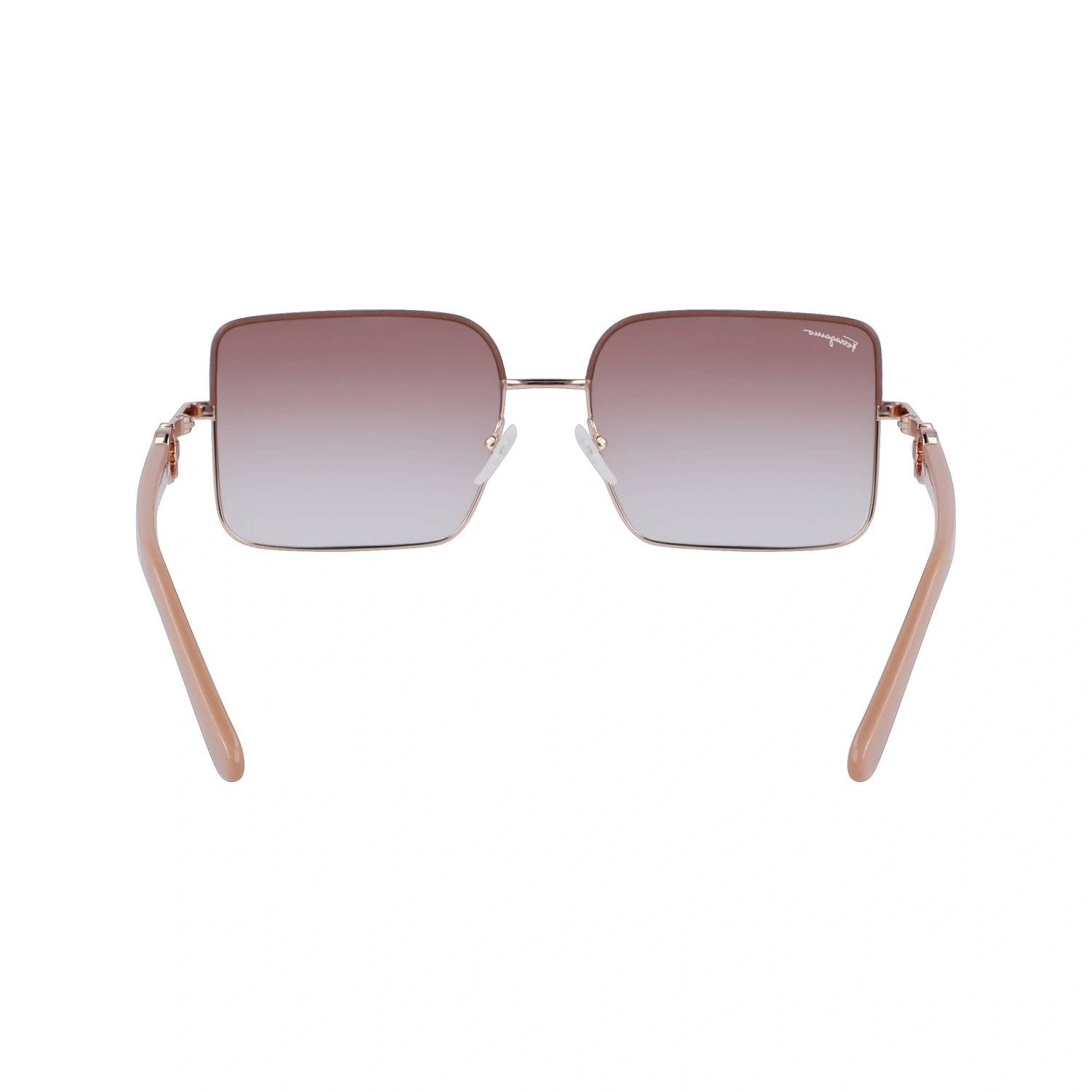 Elevate your accessory game with the Women's Sf302sl Sunglasses by Salvatore Ferragamo, a perfect blend of style and function. Crafted with a durable metal frame and plastic lenses, these rose gold nude frames feature gradient nude lenses for a chic look. Designed in a rectangle shape with a lens base of 4, these sunglasses offer a bridge measurement of 18 and rods length of 140. Their lens dimensions are 60mm in length and 49mm in height, combining modern aesthetics with superior comfort.