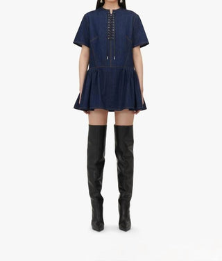 Alexander Mcqueen - Tiered Lace-up Topstitched Denim Dress