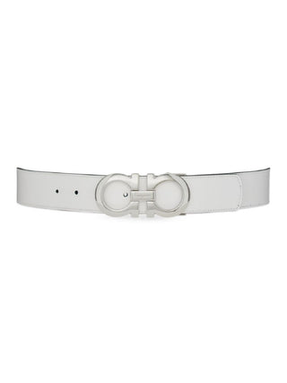 Salvatore Ferragamo Men's Double Gancini Buckle Leather Belt White Size 42