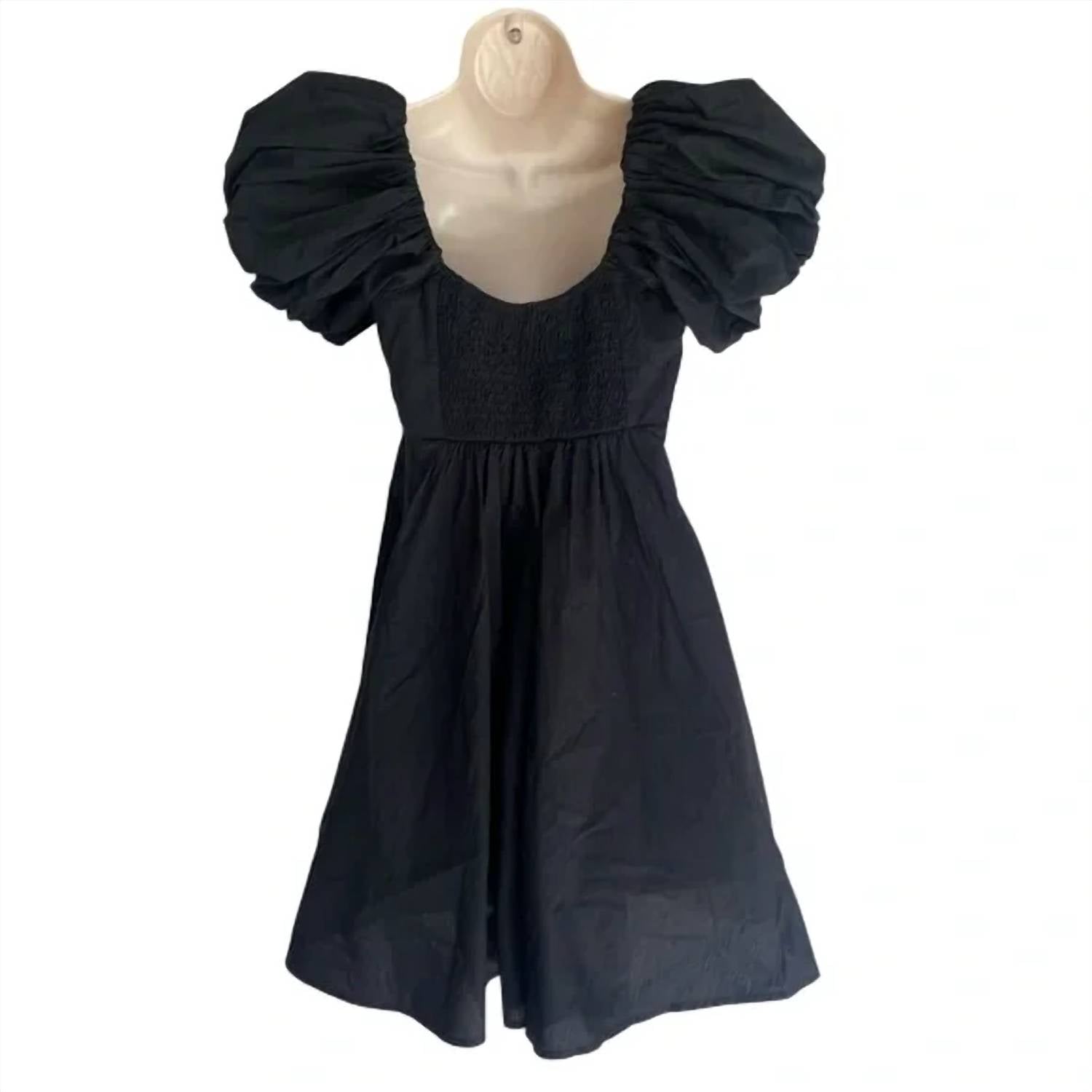 The kind of easy and flattering dress you'll be reaching for all season long. This short-sleeve mini dress is crafted in classic poplin with a flattering babydoll silhouette. Featuring ruffle puff sleeves, ruching at the bodice, and back smocking for added comfort, it finishes with a scoop neckline and a flowy skirt complete with pockets. Made from 60% cotton and 40% polyester with a 100% cotton lining; elastic blend is 72% polyester, 28% elastane.