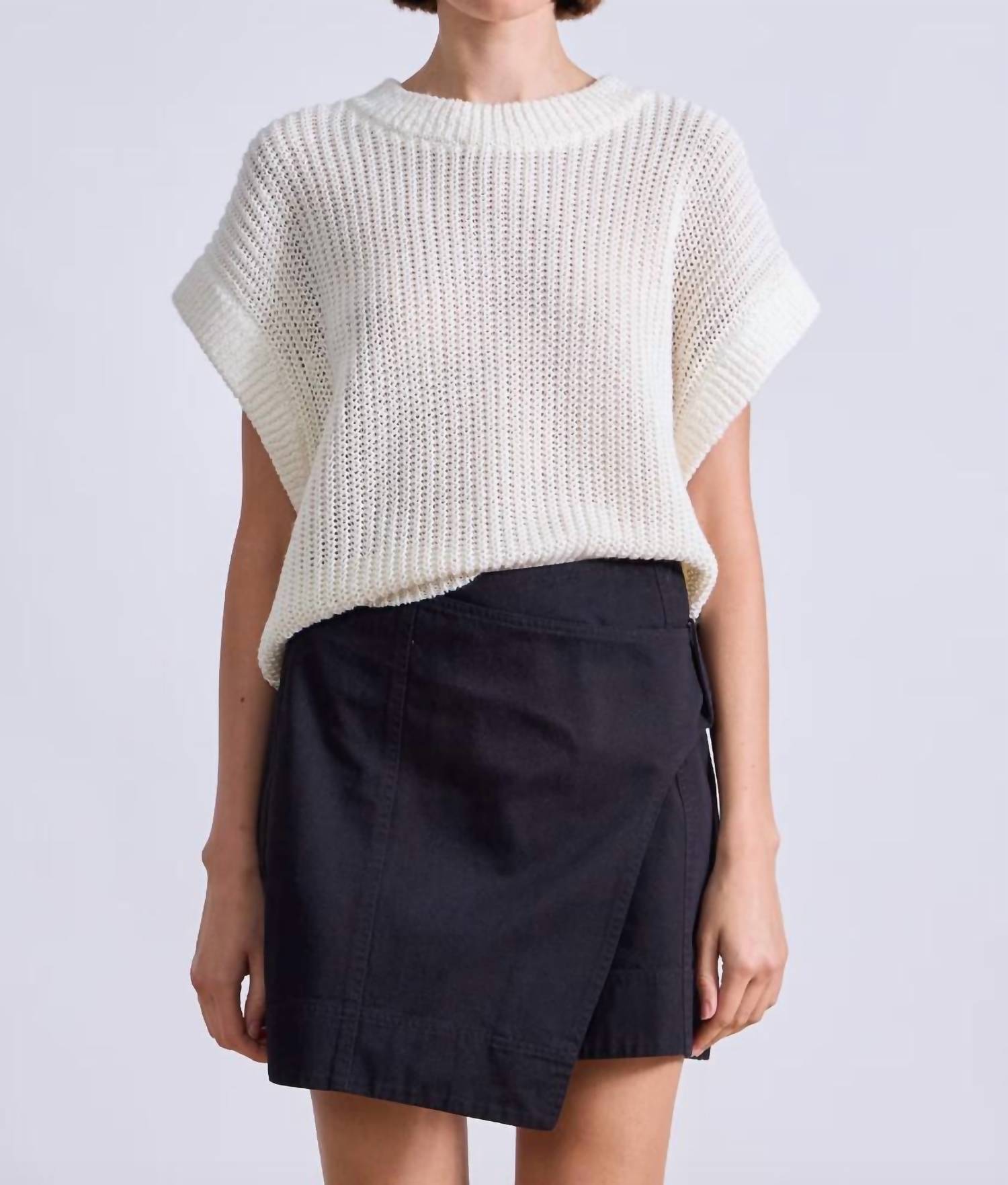 Throw this vest over an all black outfit for a perfectly polished look. Enhance your summer wardrobe with the Olivia Linen Vest by APIECE APART, a minimalist staple in elegant cream. This sleeveless vest is crafted from 100% linen and features a wide crewneck collar with ribbed, textured details. Made in China and designed for an easy fit, it is perfect for vacation or Easter outfits. Closure: Pull-on style. Care: Dry clean only. Model is 5'10" and wearing a size XS/S.