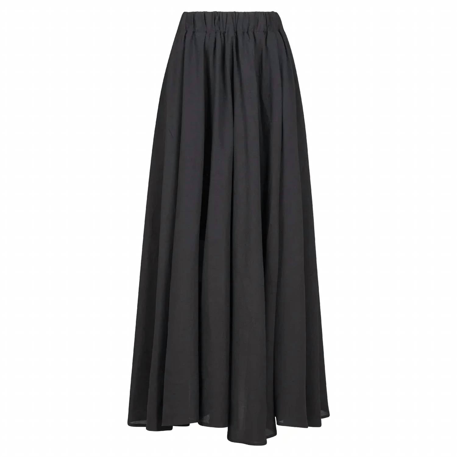 Who doesn't love a good maxi skirt? Experience the effortless elegance of the Women's Woven Skirt by ASTRID, a sophisticated choice for your fall wardrobe. This Black maxi skirt features a classic A-line silhouette and pleated design, offering a chic and timeless appeal. With an elastic waist for comfort and a pull-on closure, this skirt is as practical as it is stylish. Care instructions recommend machine wash, ensuring easy upkeep.