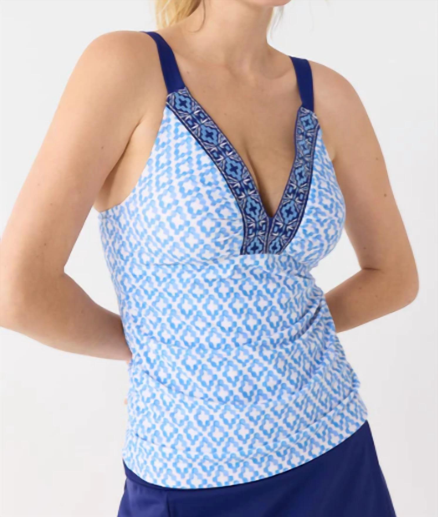 The perfect tank top for those warmer weather seasons. Elevate your beachwear with the Seaside Embroidered Tankini Top by Cabana Life, designed for both comfort and charm. This sleeveless swim top is made for summer beach days, featuring a classic V-Neck adorned with delicate embroidered details. With a pull-on closure, it offers the coverage of a tank top combined with the versatility of a bikini, perfect for swimming or lounging effortlessly. Care instructions include machine wash and tumble dry, ensuring easy maintenance for your vibrant or classic swimwear piece.