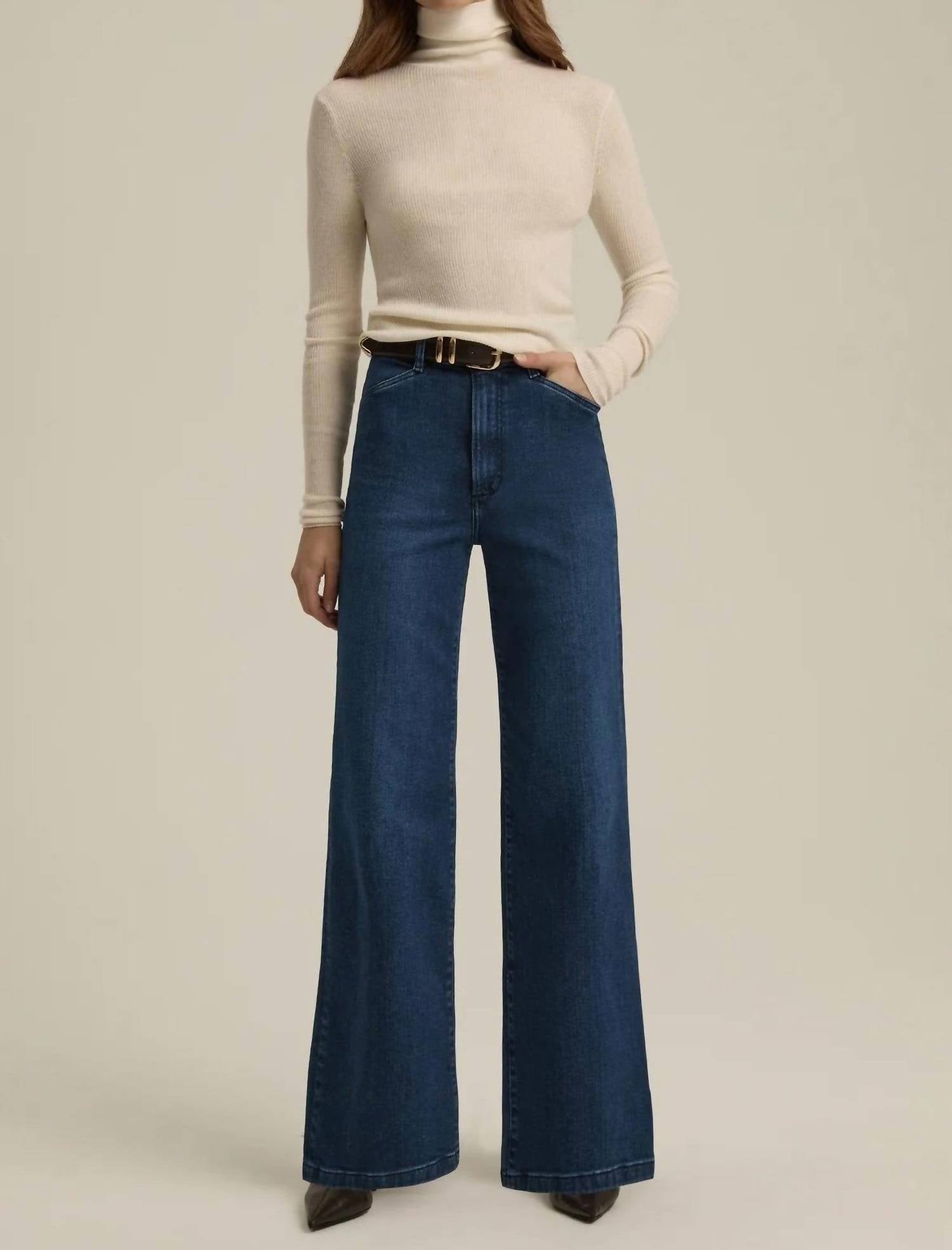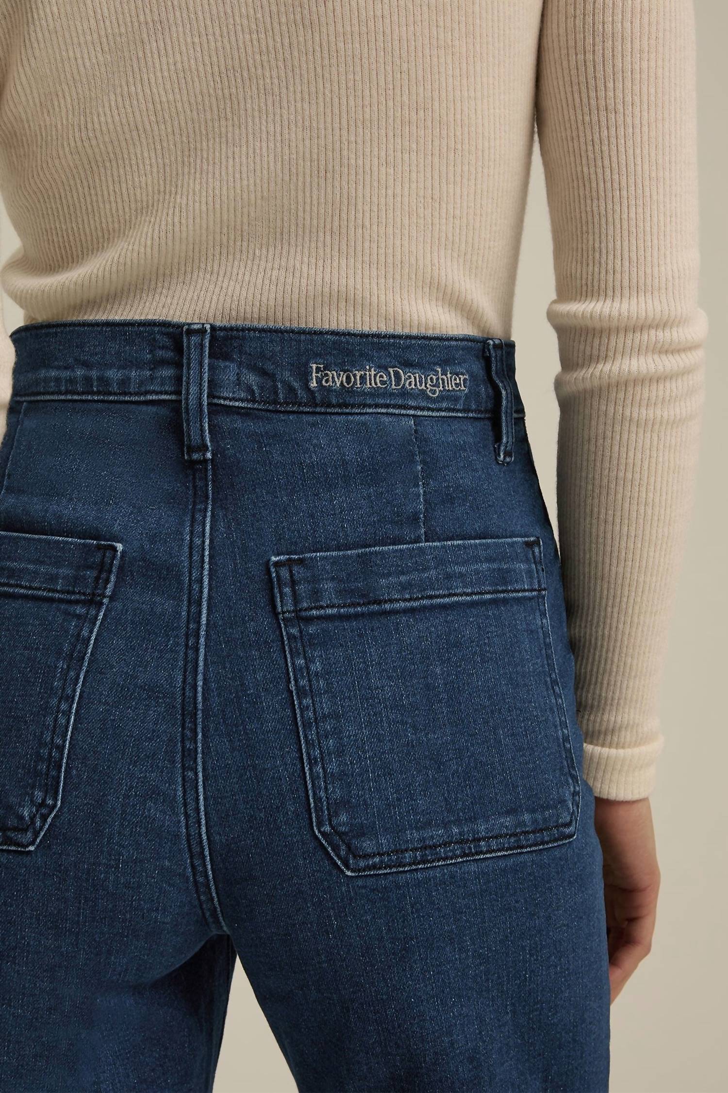 Fit to perfection, we love these high-waist jeans and you will too. Discover the Mischa Ultimate High Rise Jean by Favorite Daughter, a must-have for sophisticated style in rich dark indigo. Designed for a relaxed fit, these wide-leg jeans feature a high rise with a rise of 11.5", a knee measurement of 21.5", and a leg opening of 22", complemented by a 32" inseam. Crafted from a cotton blend of 95% cotton, 3% elasterell, and 2% elastane, this piece offers both comfort and style. Closure: Zip front button closure with silver hardware. Care: Machine wash. Perfect for the Fall season, it's a solid addition to any workwear collection.