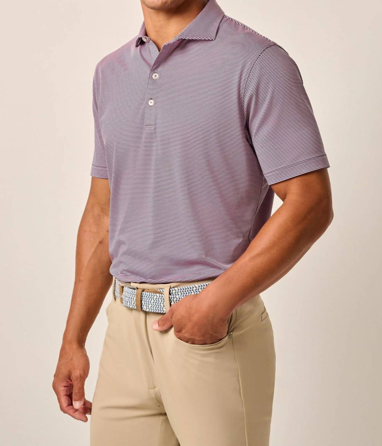 Elevate your summer wardrobe with the JOHNNIE-O Performance Jersey Polo, available in striking Navy and Porto Pink stripes. Crafted from moisture-wicking polyester, this short sleeve polo is designed to keep you comfortable while delivering a polished look. Featuring a classic collar and button closure, it includes UPF50 protection for sunny days. Care for this versatile piece is simple with machine wash and tumble dry instructions.
