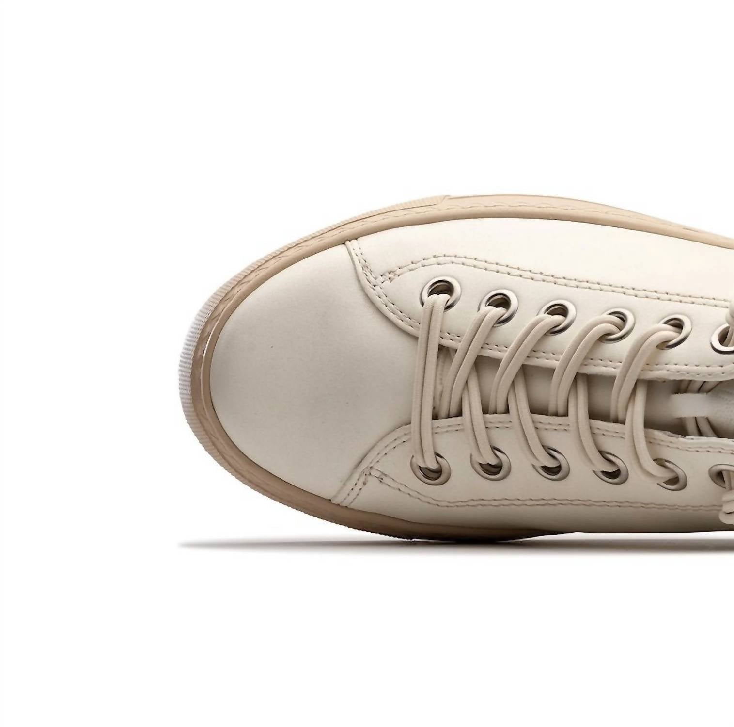 Cute, functional, and comfortable. These sneakers check all the boxes. Discover comfort and style with the Women's Hadley Sneaker by Paul Green, now available in an elegant cream shade. Made from premium Italian leather, this low-top sneaker offers ease with elastic laces and features a removable footbed with high-density foam for ultimate wearability. Handmade in Austria, it boasts the signature Paul Green arch support and comes with a round toe design, making it perfect for summer streetwear trends. Ideal for travel and casual occasions, this sneaker's sole stamp reflects its UK sizing and promises a true-to-size fit.