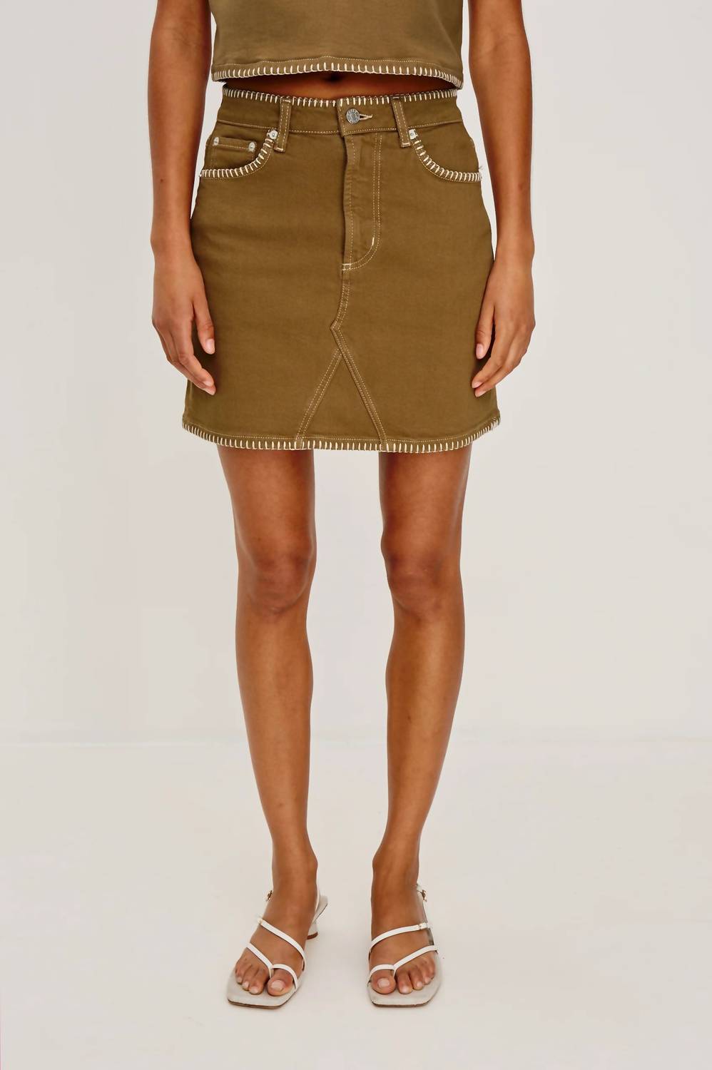 Tuck in your favorite tee for a more laid-back vibe. Introducing the Laurel High-rise Mini Skirt by Rails, a nod to 90s fashion with its high-rise fit and A-line silhouette. Crafted from a cotton blend, this skirt in Safari Embroidered color features a contrast white blanket stitch, exuding timeless style. Closure: button closure, with functional pockets for convenience. Care: Machine wash cold with like colors, tumble dry low, warm iron, and do not dry clean. Perfect for women looking to channel effortless vacation vibes this spring.