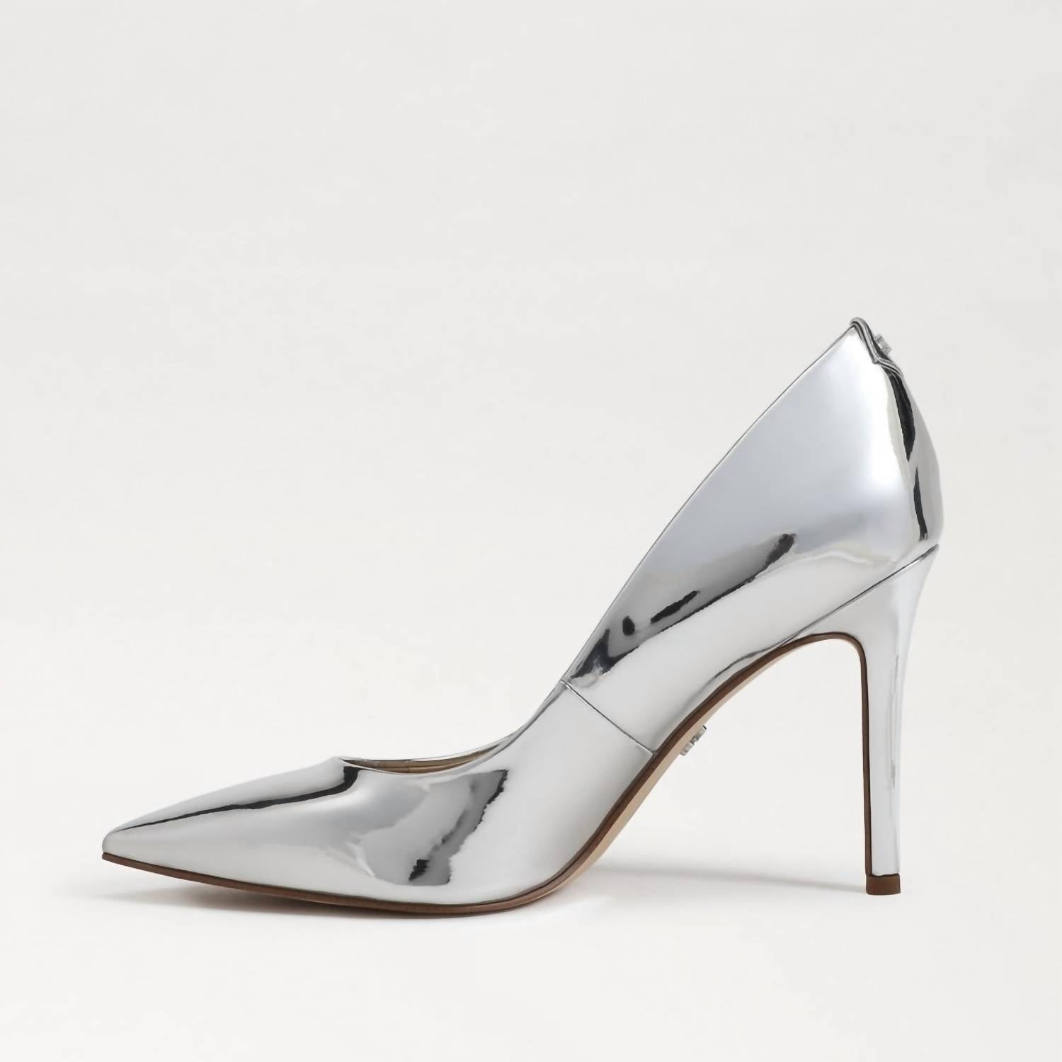 Don't be deceived, these heels are comfy as can be. Experience elegance with the Women's Hazel Pump by Sam Edelman, crafted for the modern woman who appreciates a blend of style and comfort. Featuring a pointed toe design in sleek silver and a tall 3.75-inch stiletto heel, this shoe effortlessly elongates the leg. The insole is made from synthetic materials, ensuring a comfortable fit ideal for any occasion, be it a romantic engagement or a stylish holiday outing. Embrace the quiet luxury trend for the spring season with these versatile heels that pair beautifully with dresses, jeans, or jumpsuits.