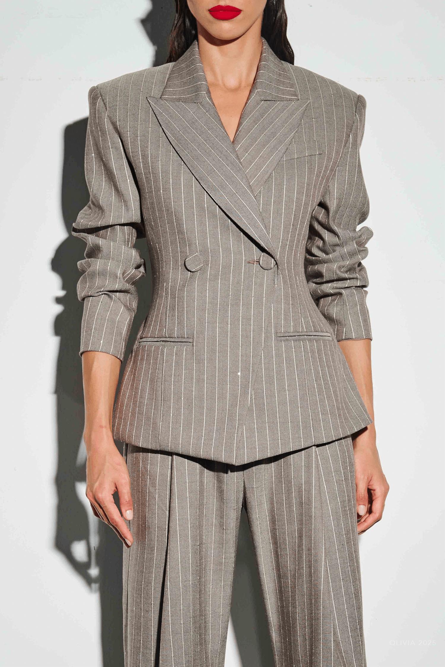 The Cinch Blazer by THE SEI is a sophisticated workwear essential in a chic pinstripe crepe design. Crafted with a composition of 92% Polyester and 8% Elastane, it features long sleeves and a structured collar for a polished look. This imported, lined blazer offers convenient button closure and pockets, perfect for effortless office styling. Care instructions recommend dry cleaning to maintain its refined appearance.