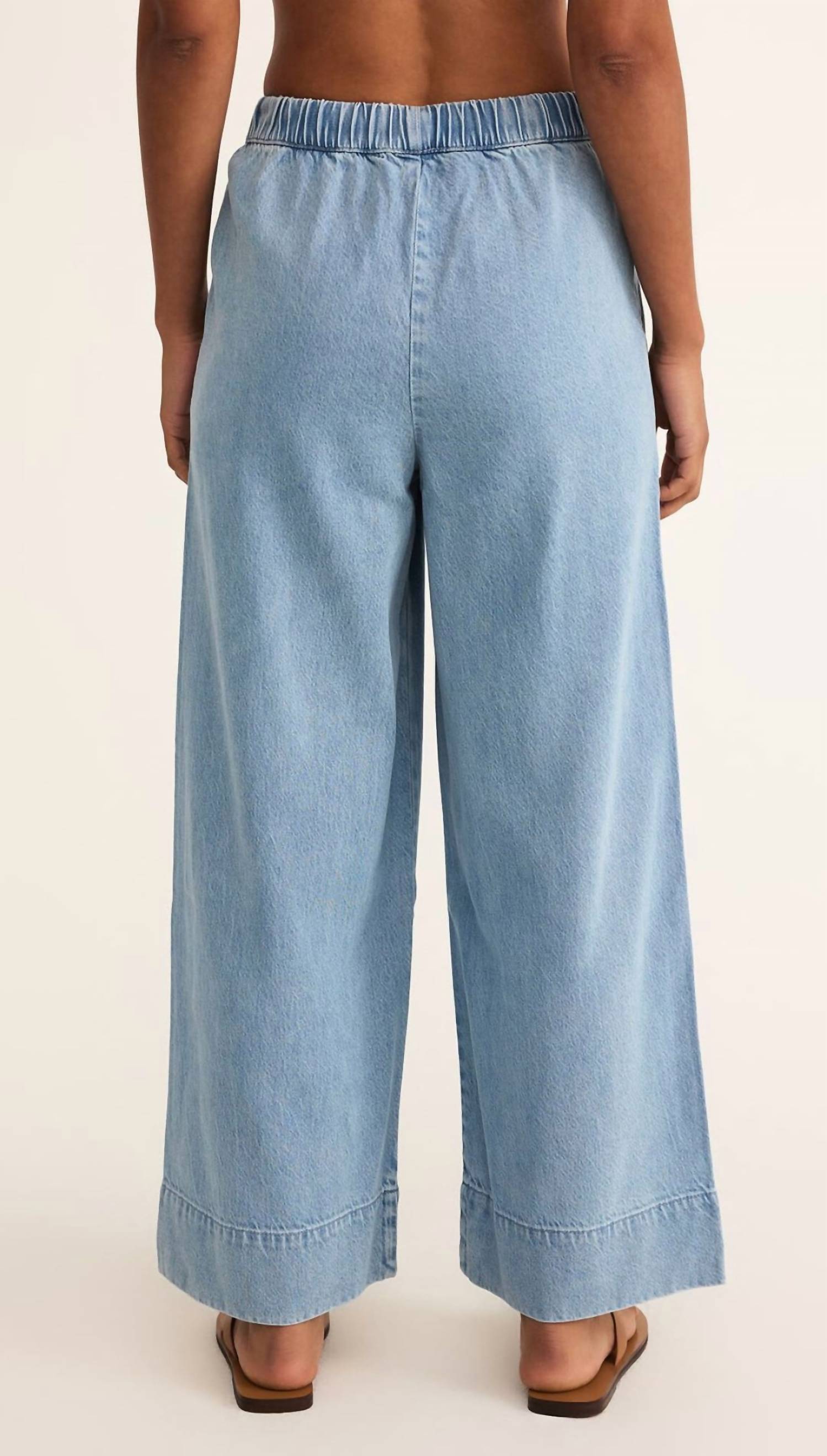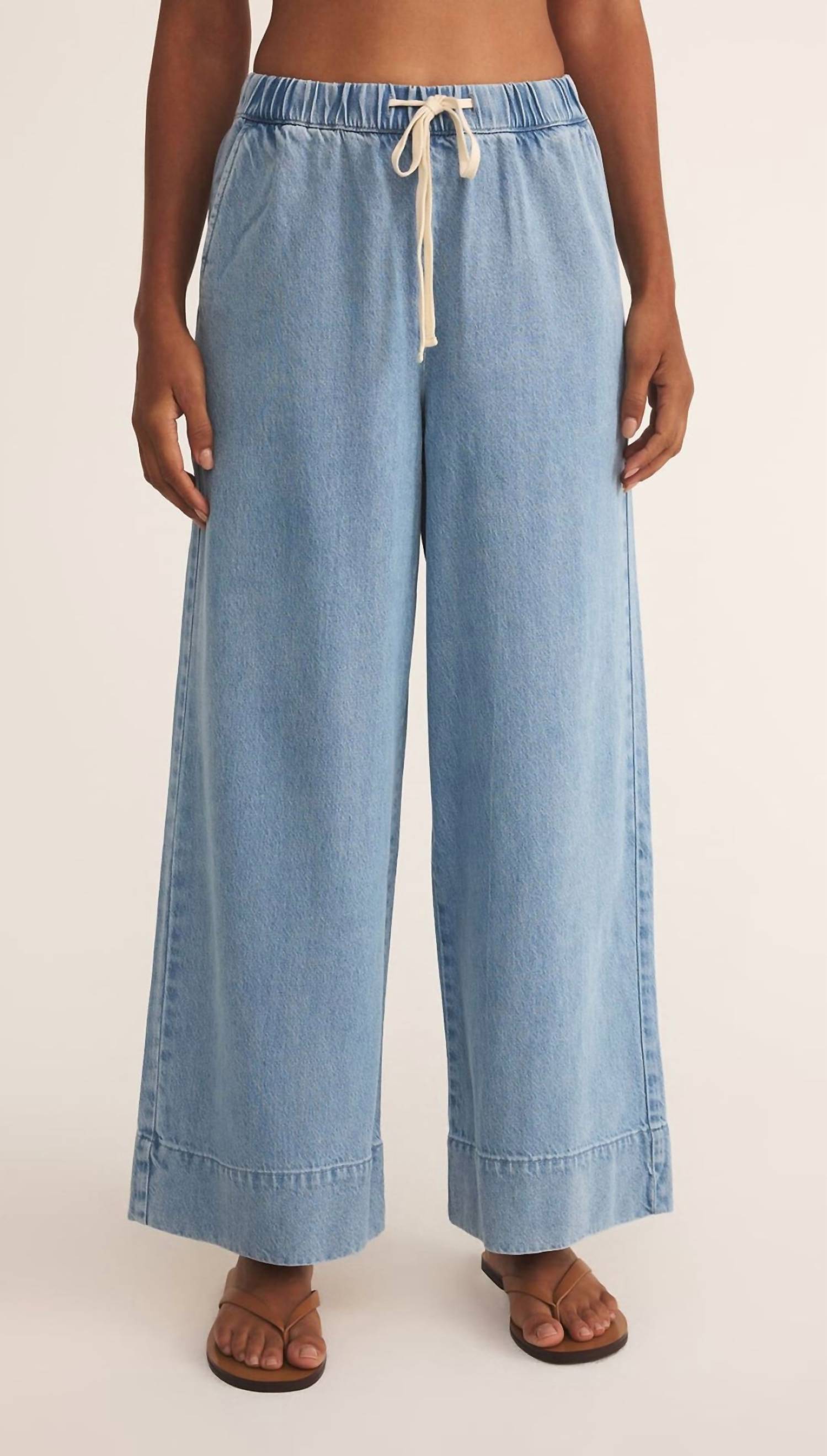 This straightleg pant is both stylish and comfortable. Did we mention the fit is perfection? Elevate your wardrobe with the Weston Denim Twill Pant by Z Supply, an ideal choice for casual occasions and everyday wear in classic blue. Crafted from denim, these high-rise, wide-leg pants feature a practical pull-on design with a regular fit for ultimate comfort and style. Perfect for spring, they come complete with pockets and a solid pattern, embodying a stylish workwear trend. Care instructions: Machine wash and tumble dry.
