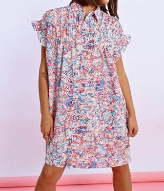 Molly Bracken - Printed Ruffle Sleeve Shirt Dress