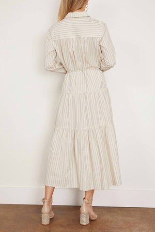She + Sky - Striped Split Neck Sleeveless Midi Dress