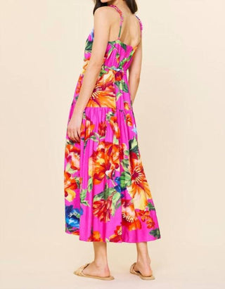 Skies Are Blue - Braided Strap Floral Print Midi Dress