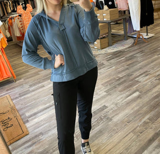 Blu Pepper - Raw Edge Hooded Pullover