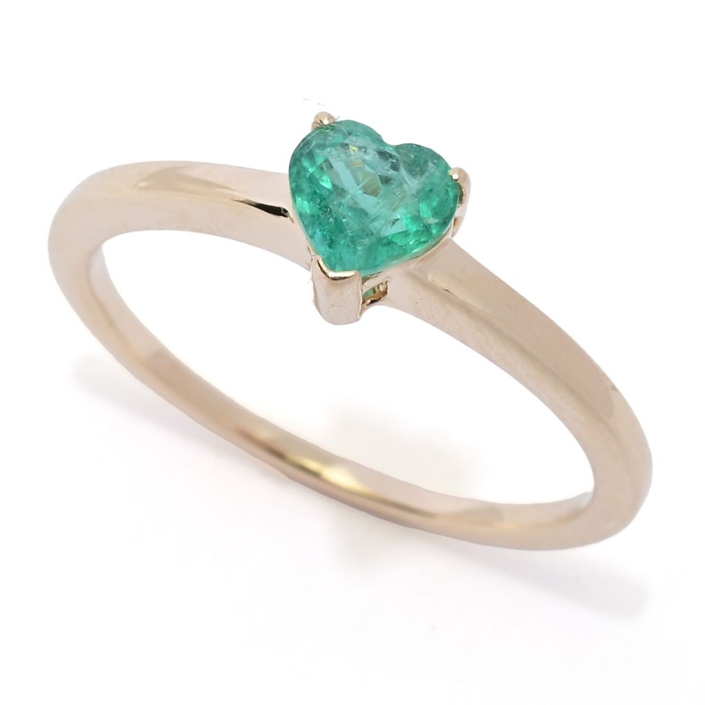 Gem Treasures 14K Gold 5mm Heart Shape Zambian Emerald Solitaire Ring