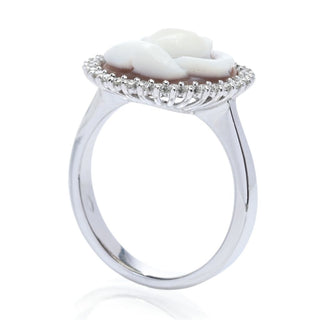 Cameo Italiano 14K White Gold Flower Shell Cameo & Diamond Ring