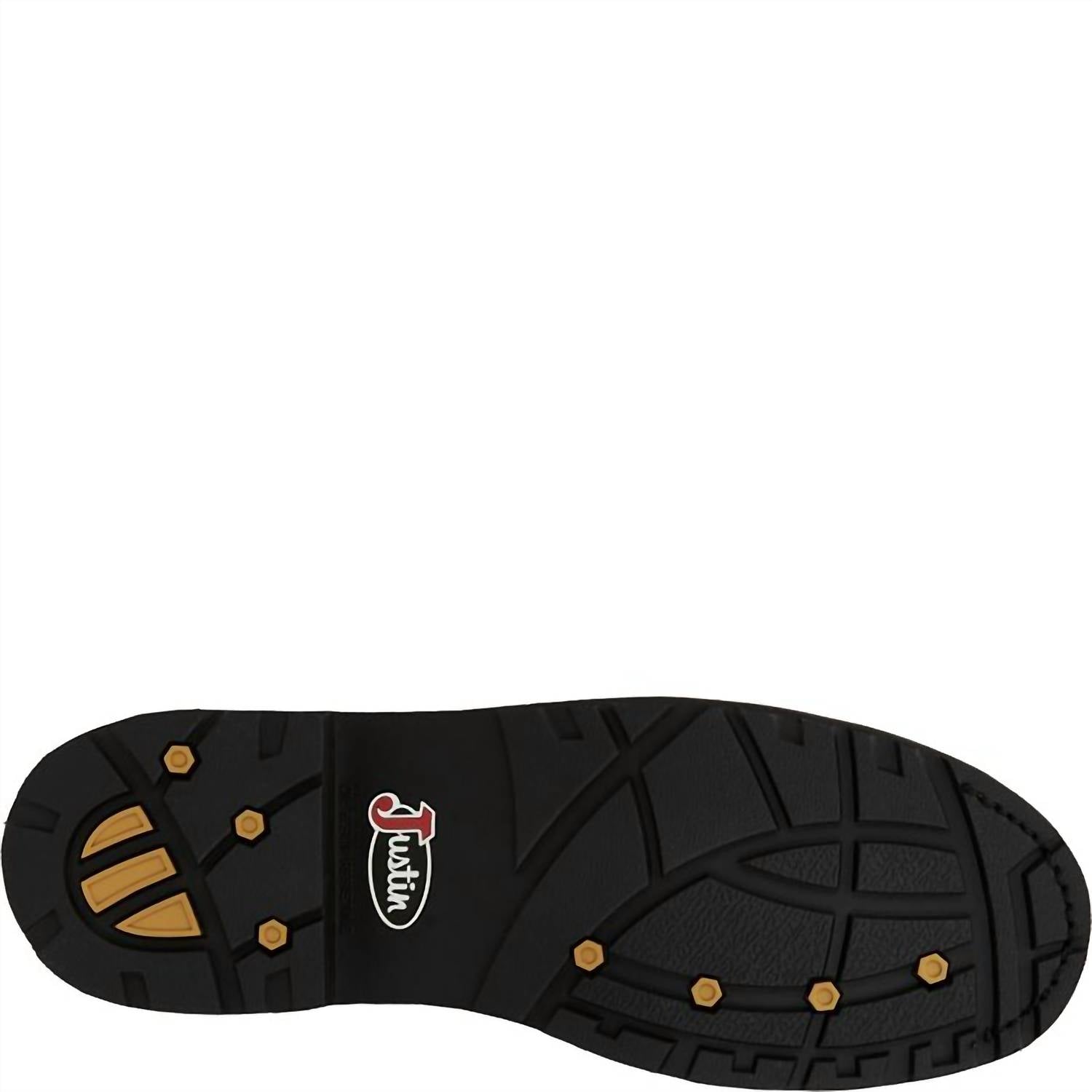 This Waterproof Steel Toe Work Boot features a 10-inch height, distressed leather, steel toe, J-Flex Flexible Comfort System, slip-resistant rubber outsole, and electrical hazard protection up to 18,000 volts. ASTM F2413 rated.