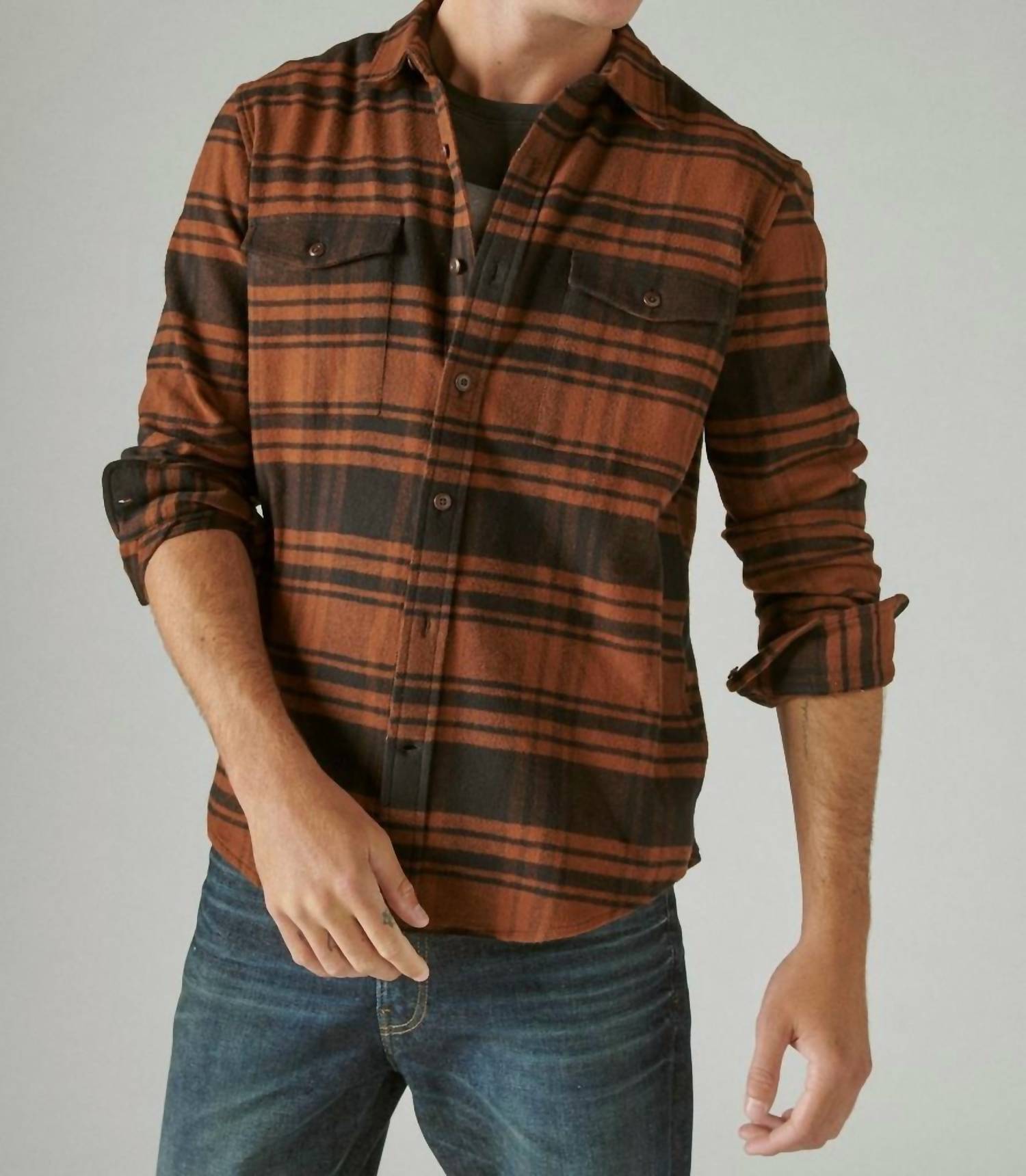 Crafted in our signature-soft cloud material, this all-cotton workwear-inspired flannel is designed for easy wear with your favorite Lucky denim. Button-down with spread collar. Long sleeves. 100 % COTTON. Machine wash.