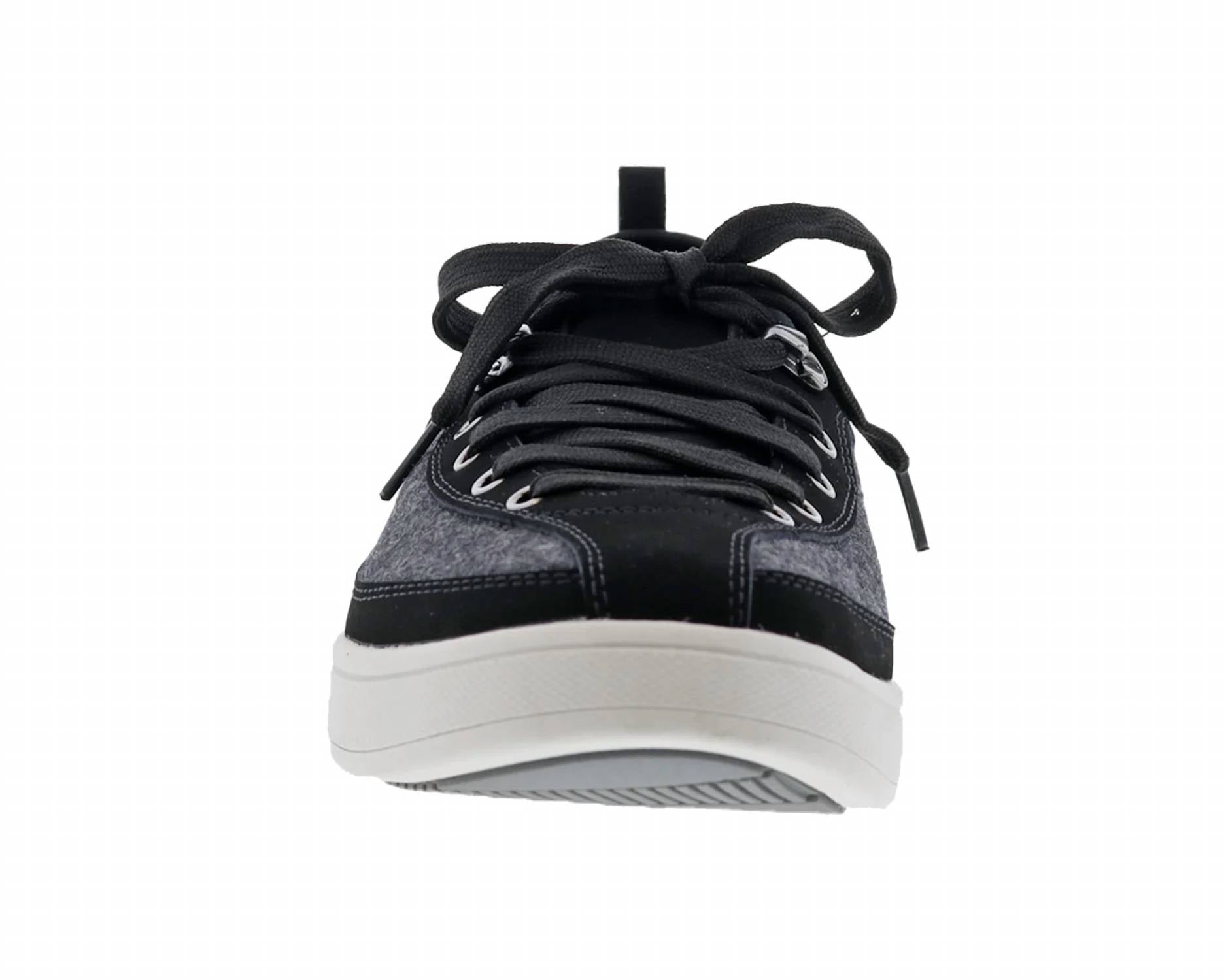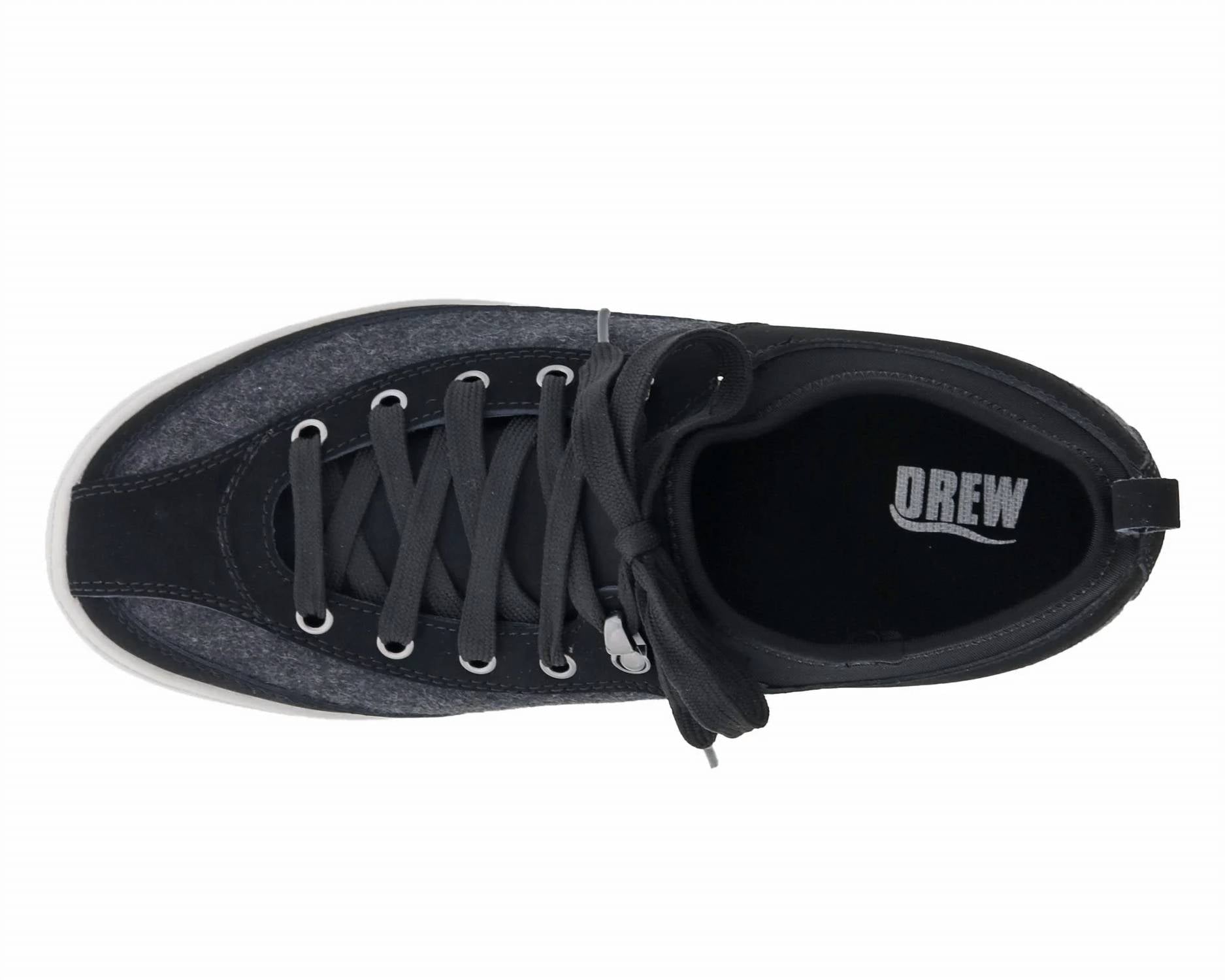 Elevate your travel style with the Men's Buzz Boat Shoes from Drew Shoes, featuring a unique sneaker-like silhouette in Black Flannel/Buck. These boat shoes incorporate a flannel upper with leather and stretch fabric trims, complemented by a completely stretchable tongue and collar for added comfort. The Plus Fitting System® offers customizable support with two removable footbeds, and the flared, lightweight rubber outsole ensures impressive stability, while the 1" heel adds a subtle lift. Ideal for streetwear trend enthusiasts, these boat shoes accommodate prescribed orthotics and are perfect for those seeking versatile travel shoes.