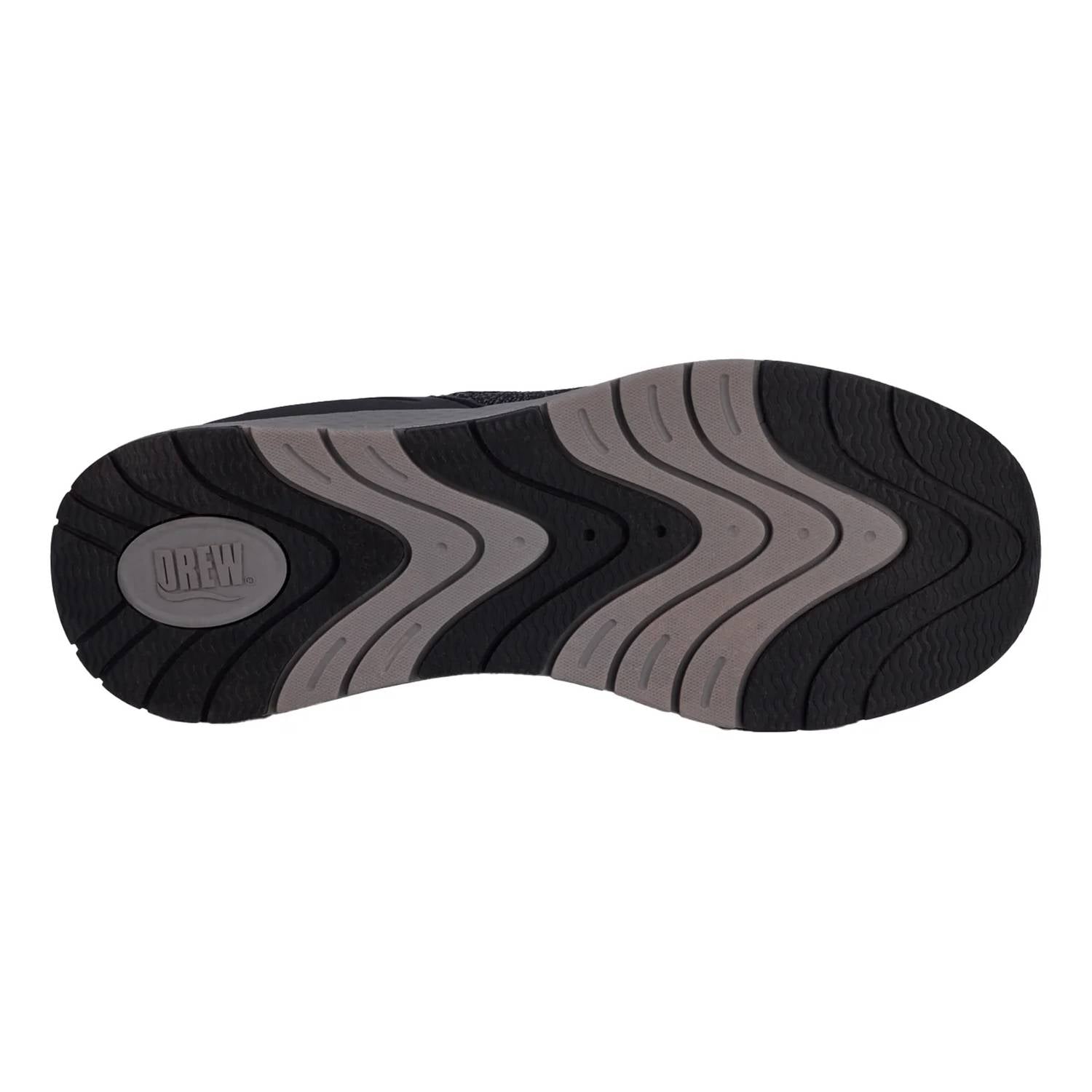 The Men's Explore Slip Resistant Athletic Shoes by Drew Shoes offer an ideal blend of comfort and convenience, perfect for fitness and workout settings. Featuring a lightweight mesh upper in a sleek black mesh combo and a round toe design, these sneakers ensure a breathable and snug fit. With a rubber outsole and a flat heel style at a height of 1.25 inches, they provide excellent traction and stability. These shoes also include two removable insoles, including Drew's Walk Right Technology insole, for added or double depth customization.