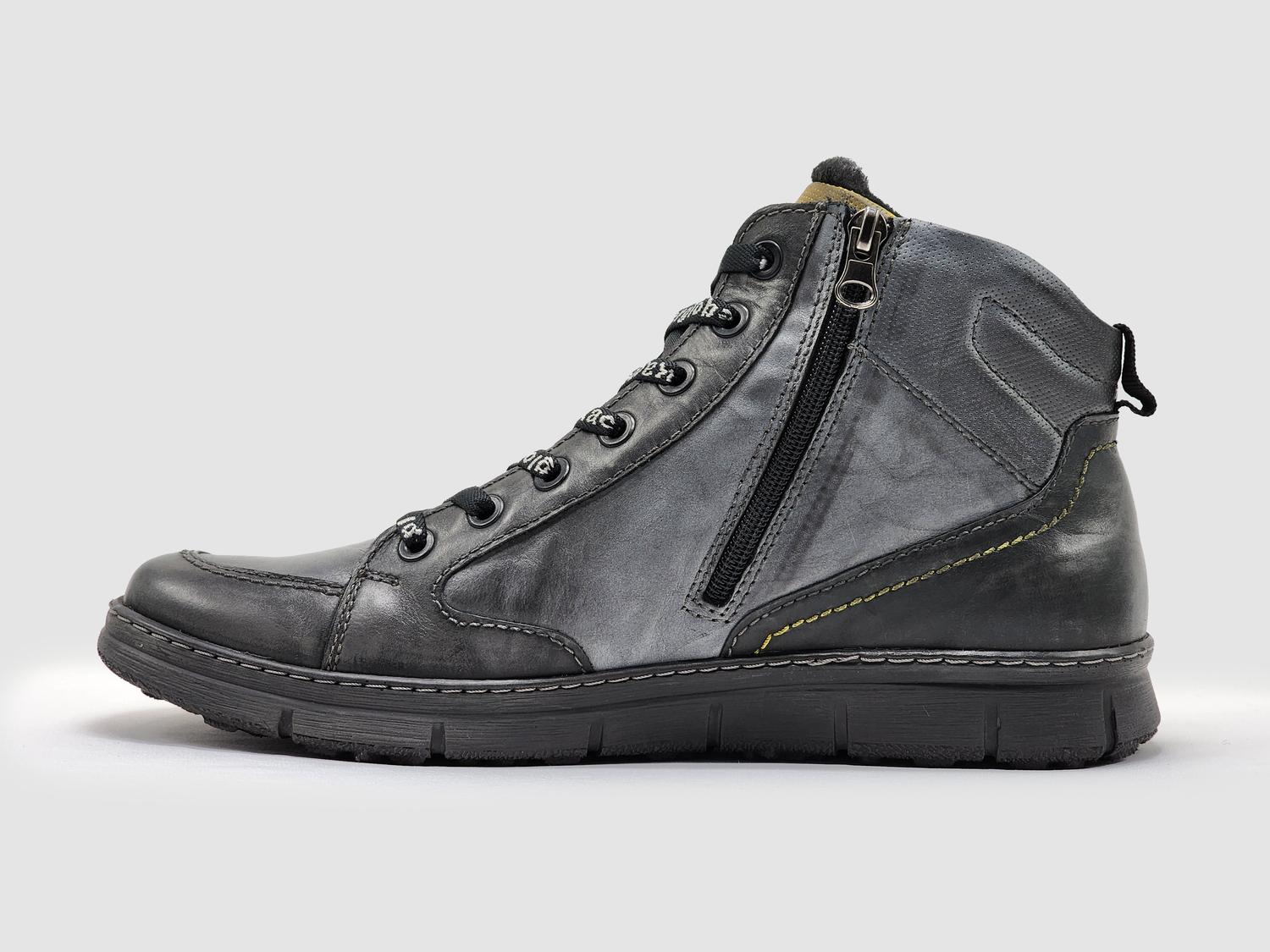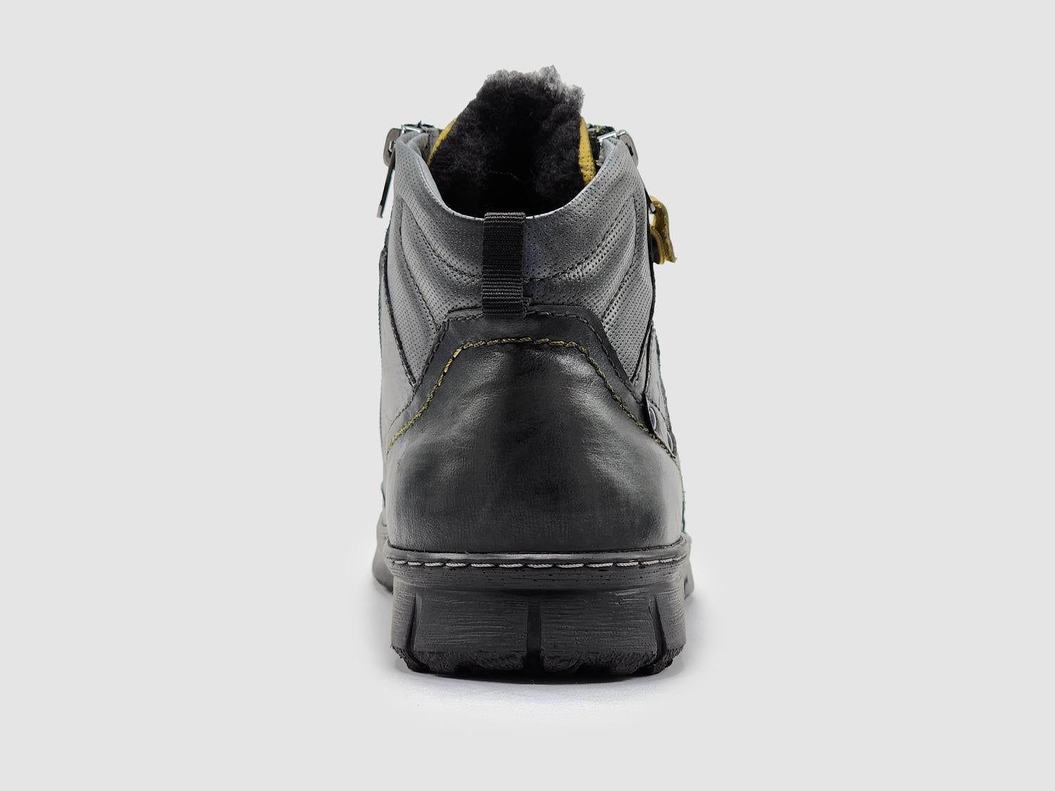 Thick wool lining for added warmth. Zip-up design for easy on and off. Lightweight construction for all-day comfort. Sleek grey color for versatile styling. Durable and long-lasting. Ideal for everyday wear in colder weather. Runs true to size. Handcrafted in Poland from high-quality leather.
