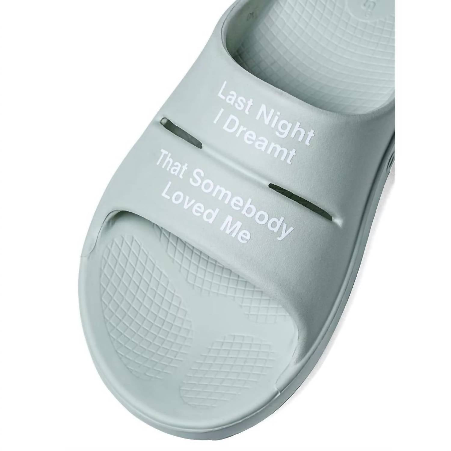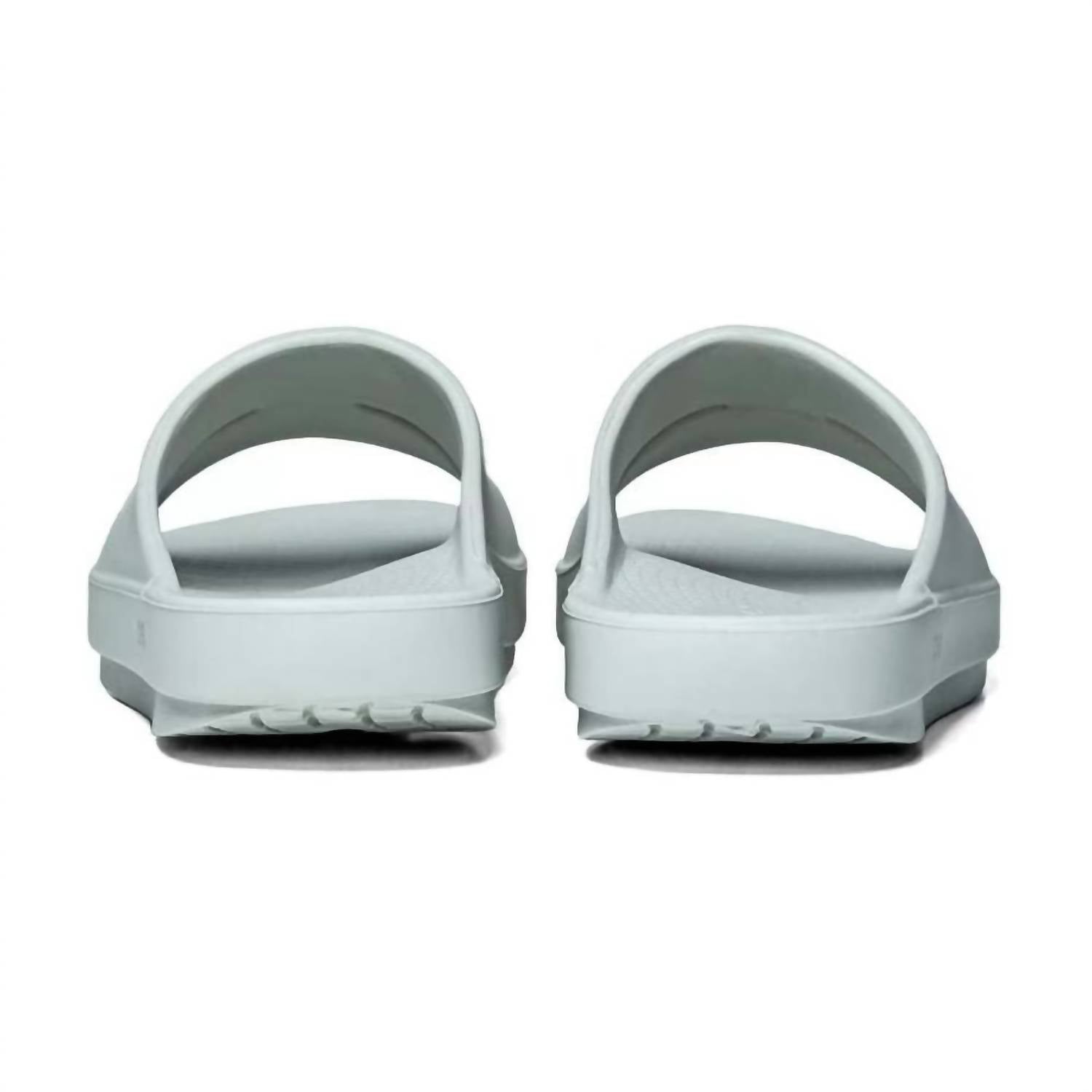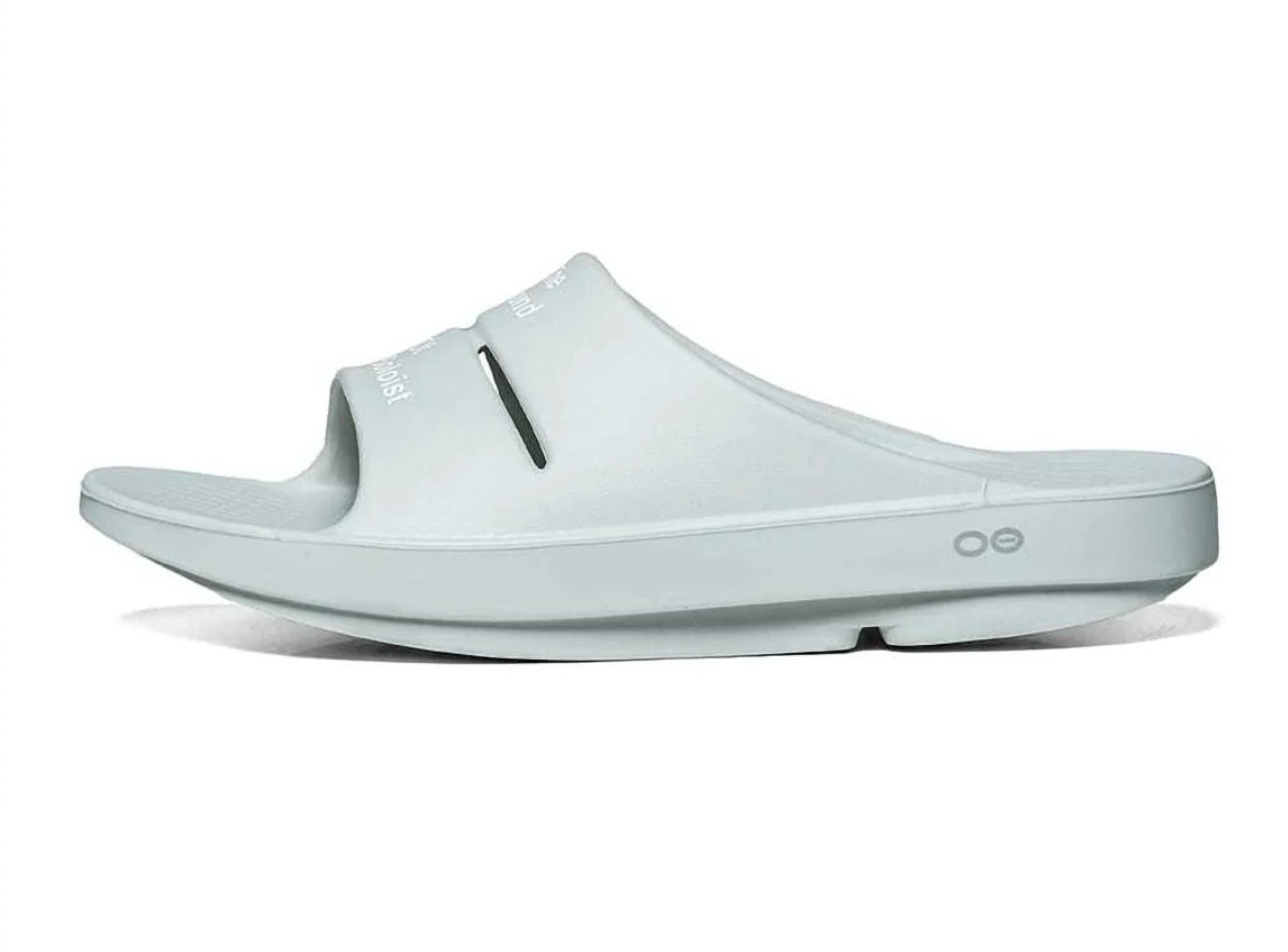Introducing the Women’s Slide Sandal by OOFOS x TAKAHIROMIYASHITATheSoloist., a chic choice for your summer streetwear collection. Made from 100% recovery foam rubber, these sandals in Cosmic Gray feature unique prints on each foot, perfect for adding a personal flair to your travel wardrobe. Designed in a round toe shape, they ensure both comfort and style during any adventure. Crafted in Vietnam, they're an ideal blend of fashion and function for the modern men.
