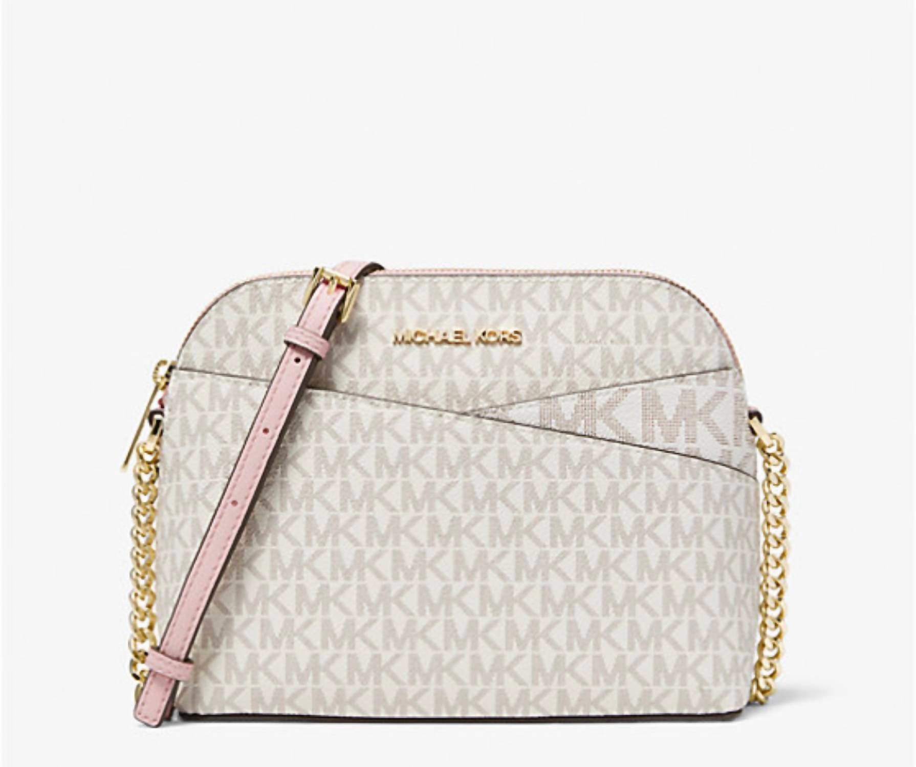 This crossbody bag will be your go-to bag of the season. This crossbody bag boasts signature appeal in logo-print canvas that’s accented with top-stitch detailing. Rendered in a structured dome shape, it features an adjustable chain-trimmed strap and a convenient back slip pocket. • Crossbody bag • Logo-print canvas • 89.4% coated canvas/9.6% polyester /1% polyurethane • Gold-tone hardware • 8.5”W X 6.75”H X 3.5”D • Exterior details: back slip pocket • Interior details: back zip pocket, front slip pocket • Lining: 100% polyester • Zip fastening • Dust bag not included • Imported