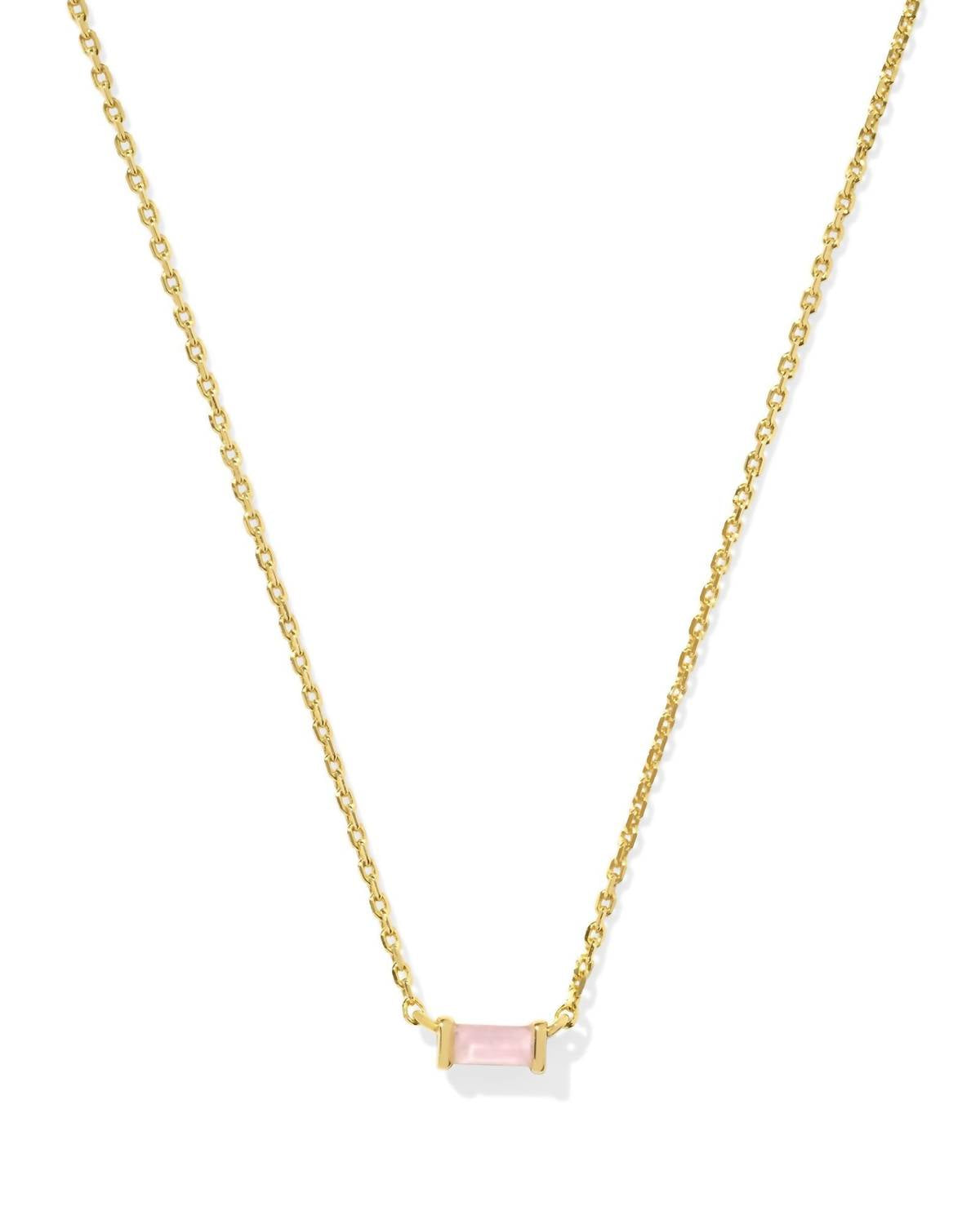 The perfect stand-out necklace that complements even the most basic t-shirt. The Juliette Pendant Necklace by Kendra Scott is a delicate yet impactful piece that embodies elegance and purpose. Featuring a rose quartz pendant, this necklace not only offers style but also supports breast cancer awareness through The Kendra Scott Foundation. The necklace comes with a 19-inch chain, and the pendant measures 0.39" in length by 0.13" in width. Crafted in gold and rose quartz, it's a meaningful addition to any jewelry collection.