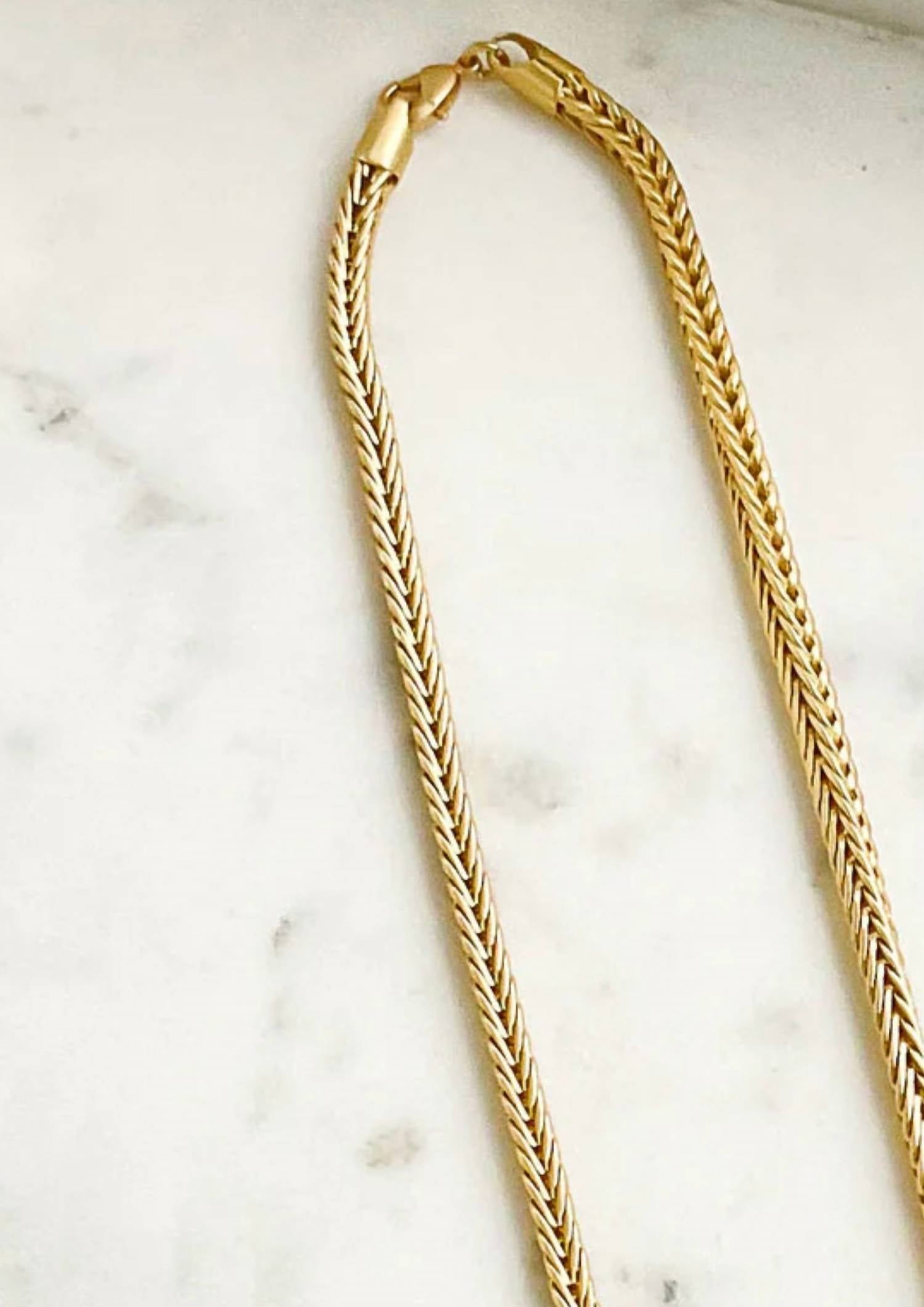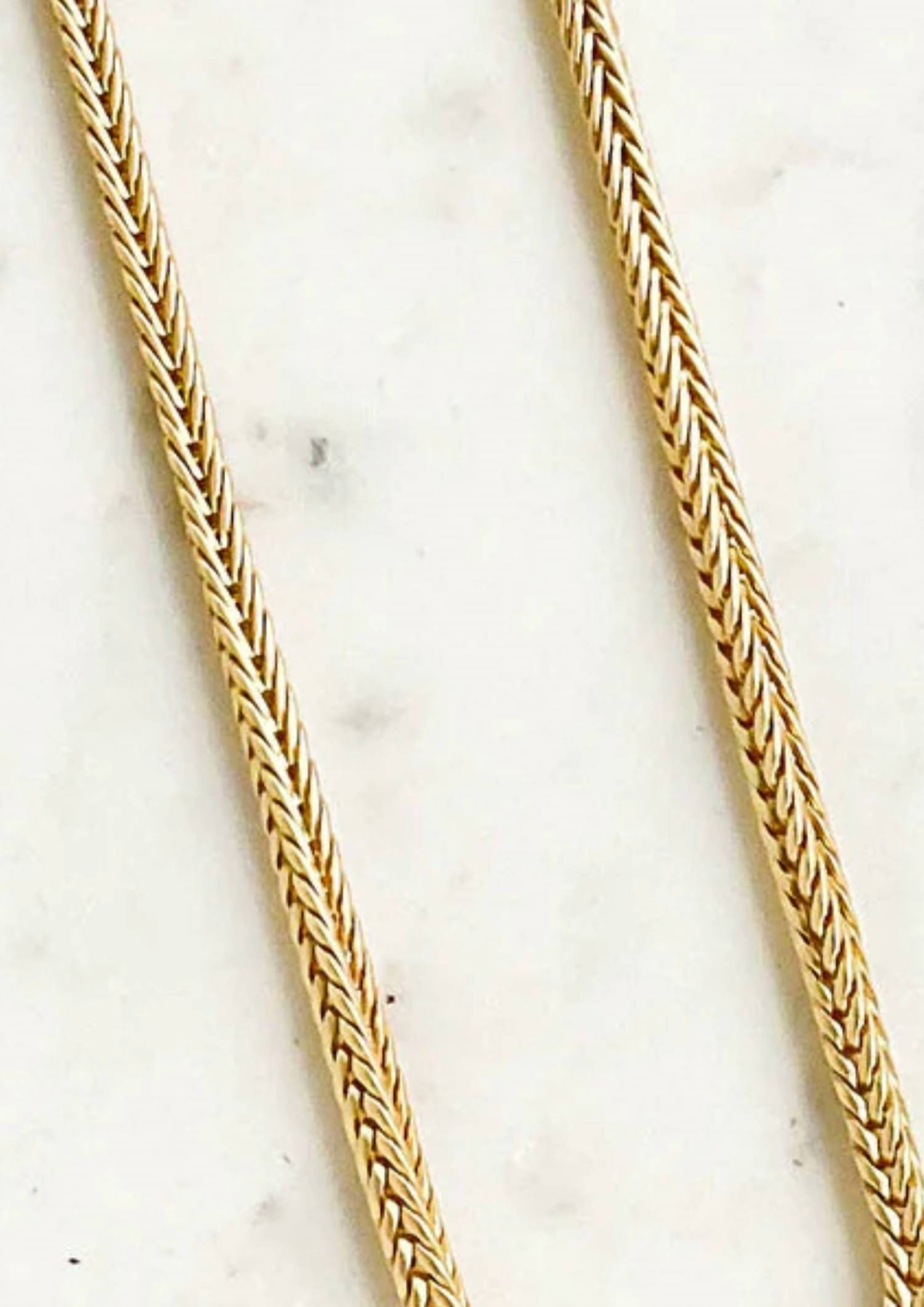 Layer this necklace or wear it on its own. Either way it's a win-win. Elevate your accessory game with the Women's Box Weave 18" Necklace by Virtue, a timeless piece in radiant gold. Crafted from durable brass, this necklace boasts a delicate box weave pattern, making it perfect for layering or wearing on its own. Its 18-inch length ensures it sits gracefully around the neck. A must-have addition to any jewelry collection.