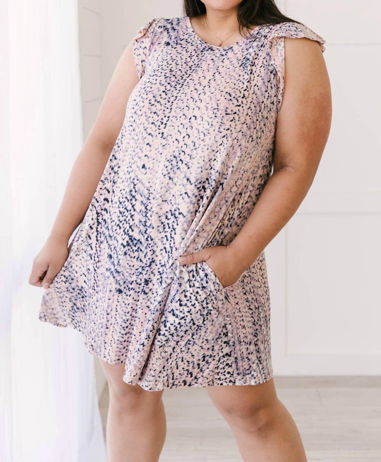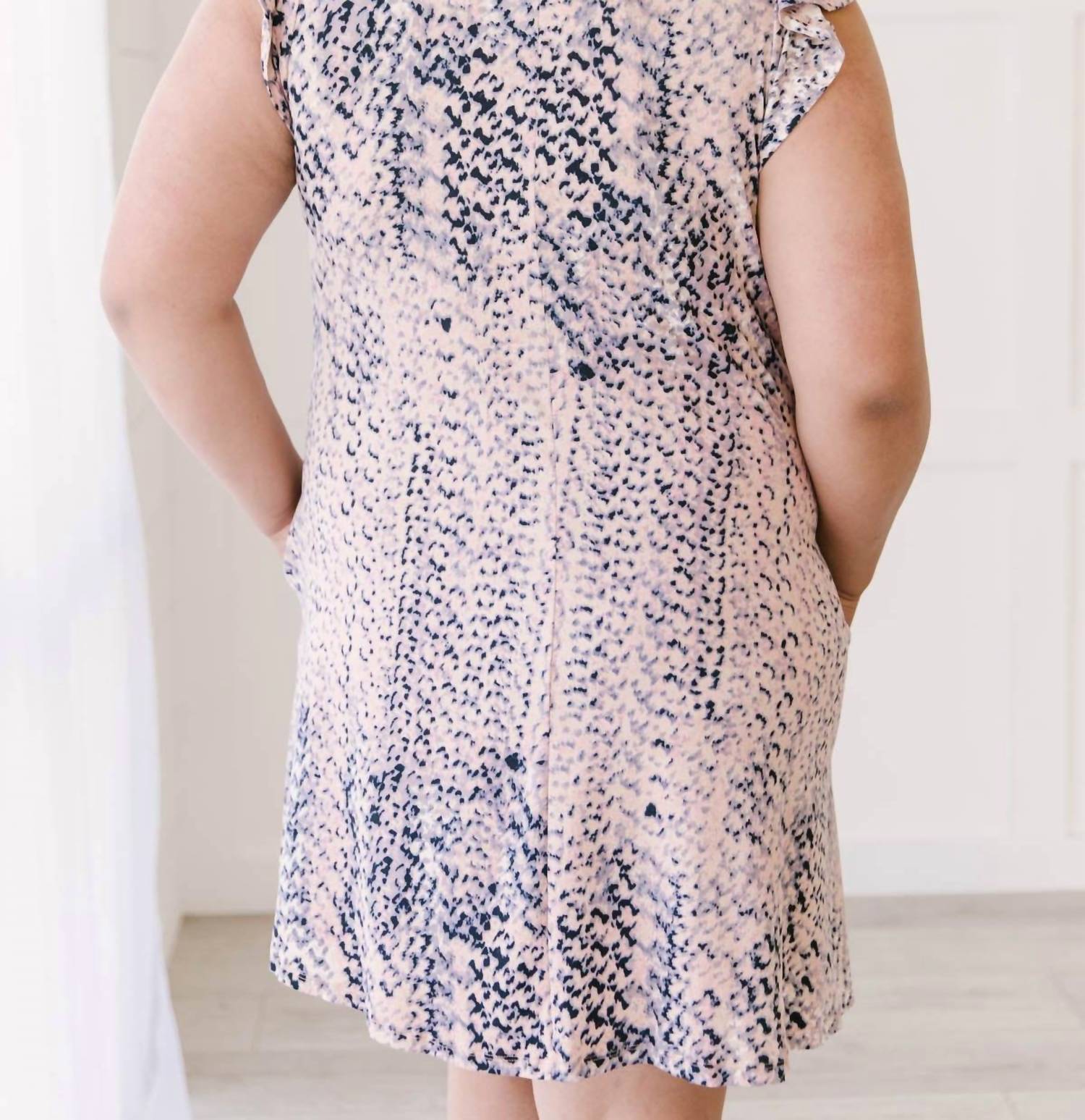 Just add slides or mules and you are good to go.High round neckline. Short flutter sleeves. Lightweight. Soft Baby Suede Material. Functional Pockets. 95% Polyester, 5% Spandex. Wash Cold, Hang Dry. Fits True To Size.