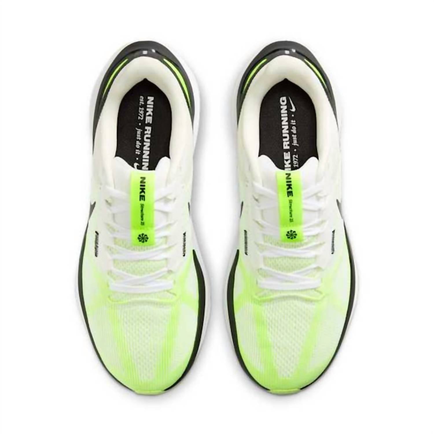 Step into comfort with the Men's Structure 25 Road Running Shoes by NIKE, designed for a supportive ride on your runs. Featuring a breathable mesh upper with targeted support zones, these shoes are ideal for fitness and workout sessions. The Cushlon 3.0 foam midsole combined with an Air Zoom unit ensures cushioning and stability, while the durable Waffle outsole provides reliable traction. With a weight of approximately 289g in men's UK 9 and a 10mm heel-to-toe drop, these shoes offer a stable, consistent fit and reflective design details for enhanced visibility.