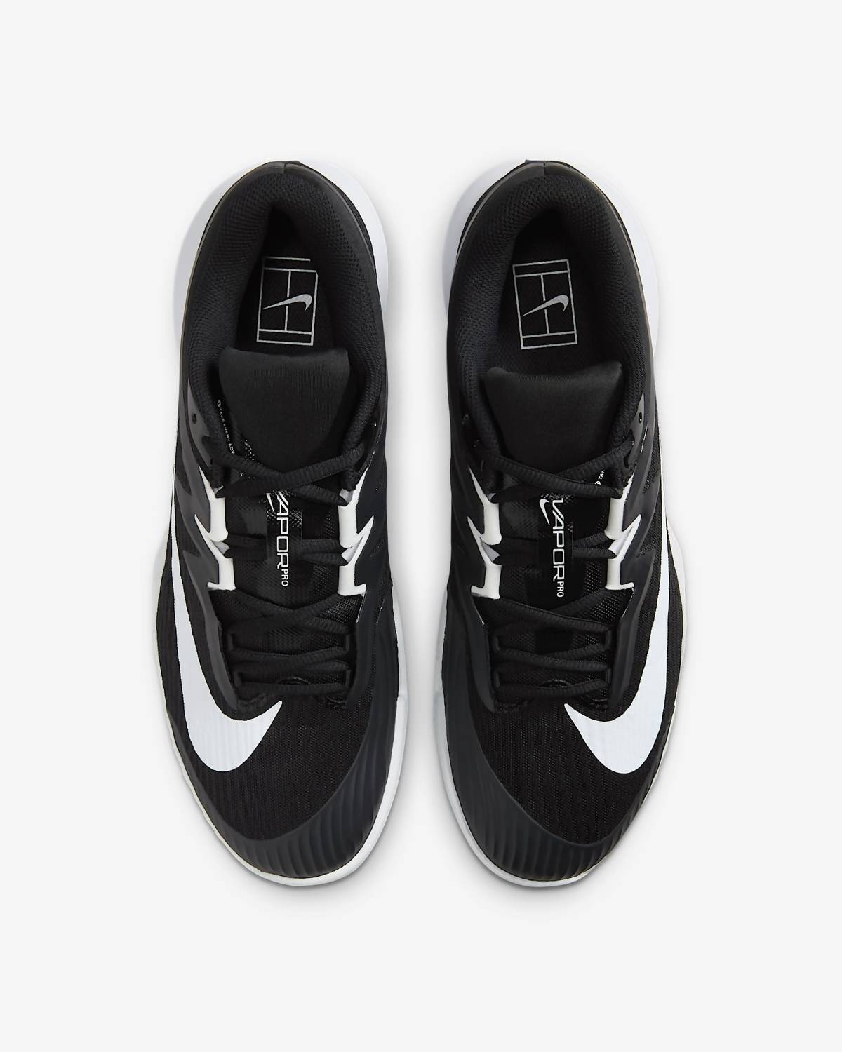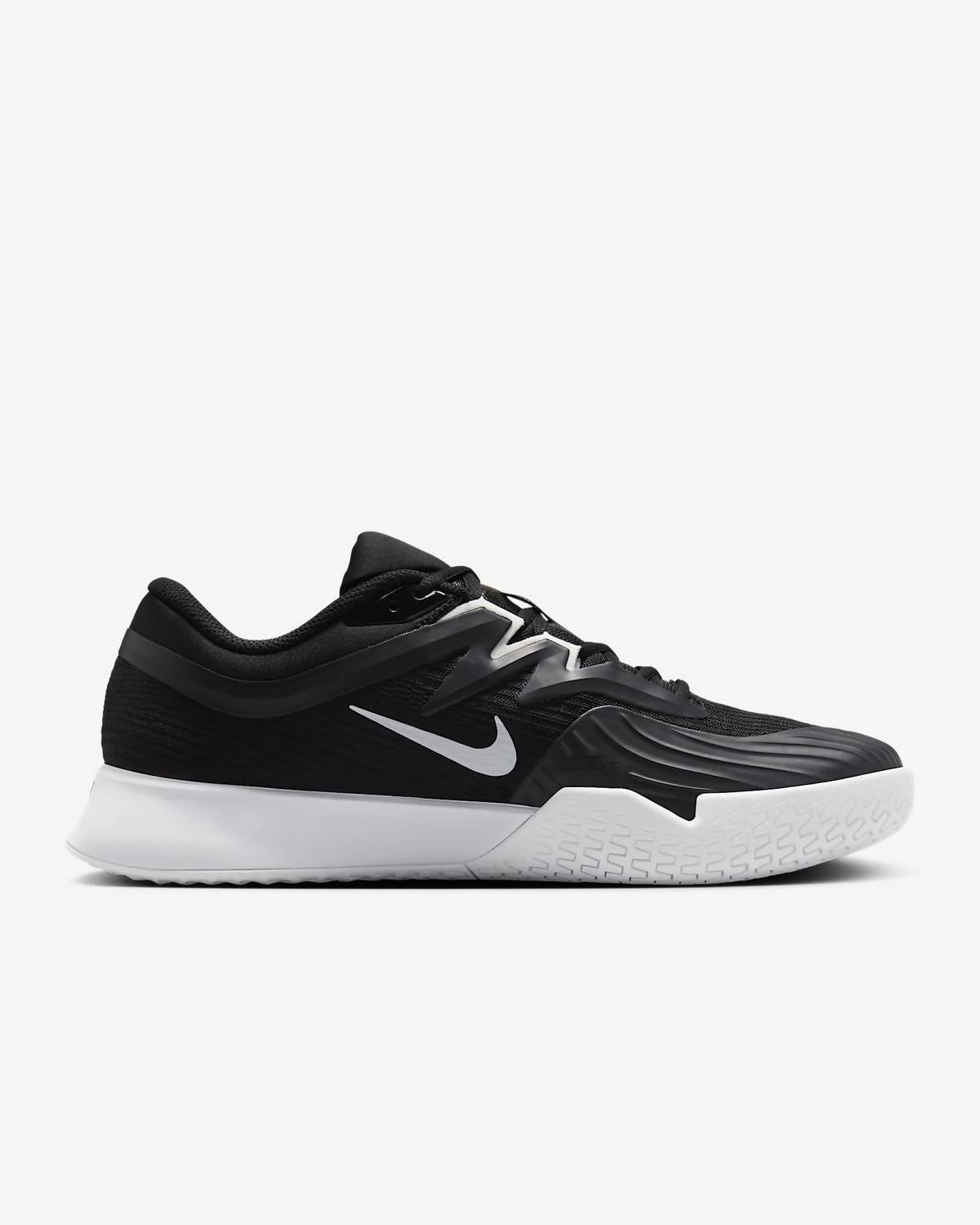 Introducing the Nike Women's Zoom Vapor Pro 3 Hc Tennis Shoe, a high-performance athletic shoe in classic Black/White. Designed with a round toe shape, it features springy Air Zoom cushioning and a new lighter rubber compound, making it ideal for agile side-to-side movements and quick scrambles to the net. Perfect for adults seeking durable footwear that can endure until match point. This product is engineered by Nike, a pioneer in athletic excellence.