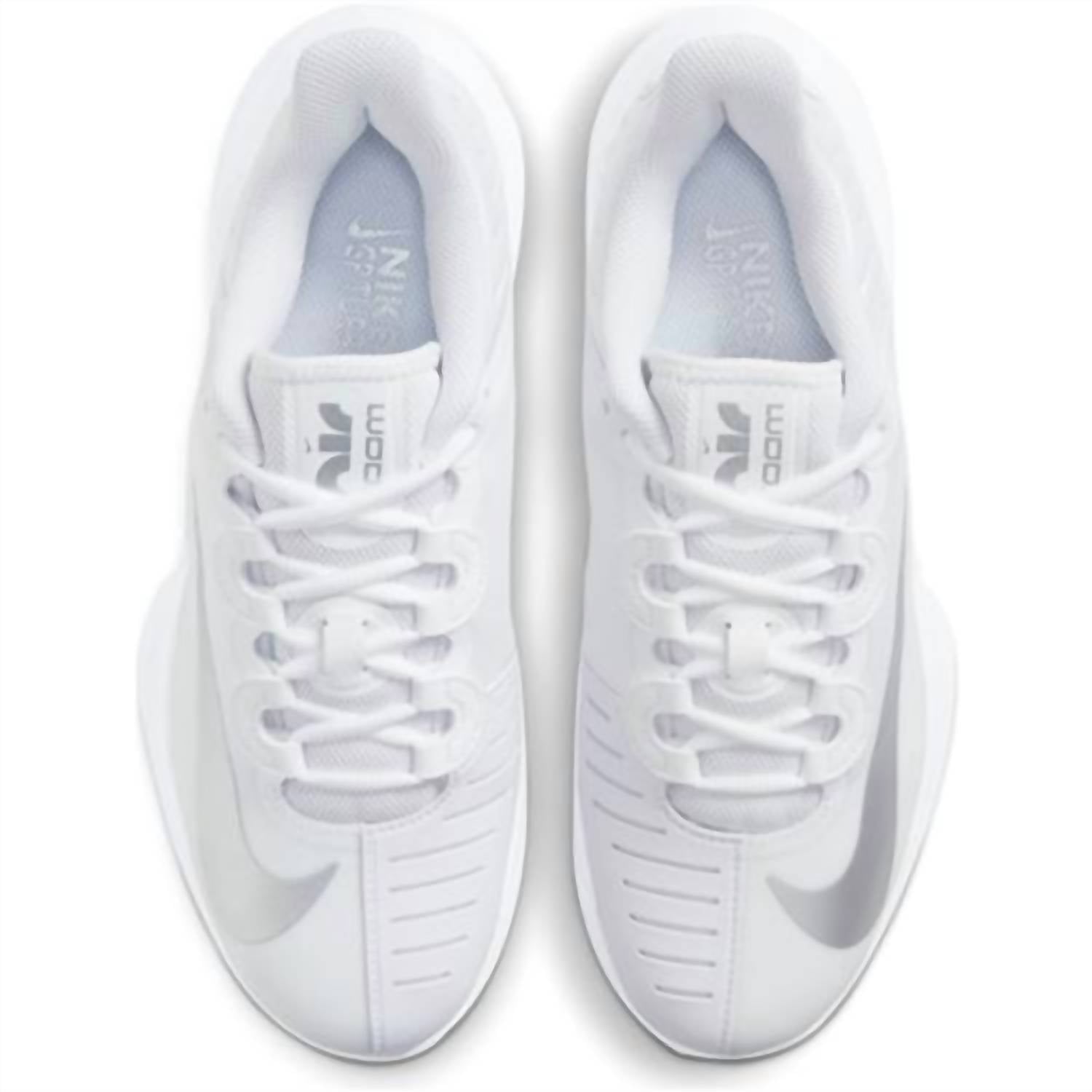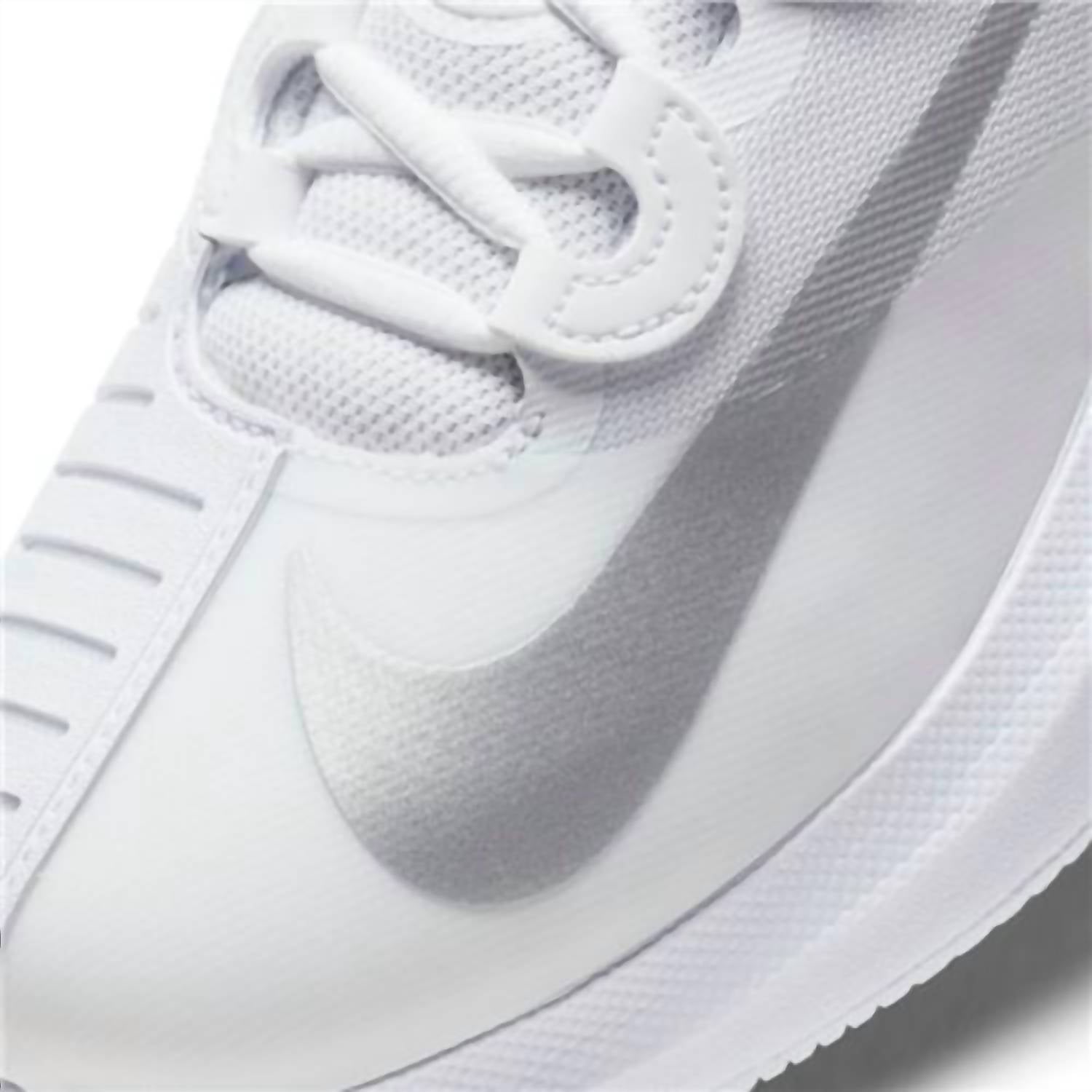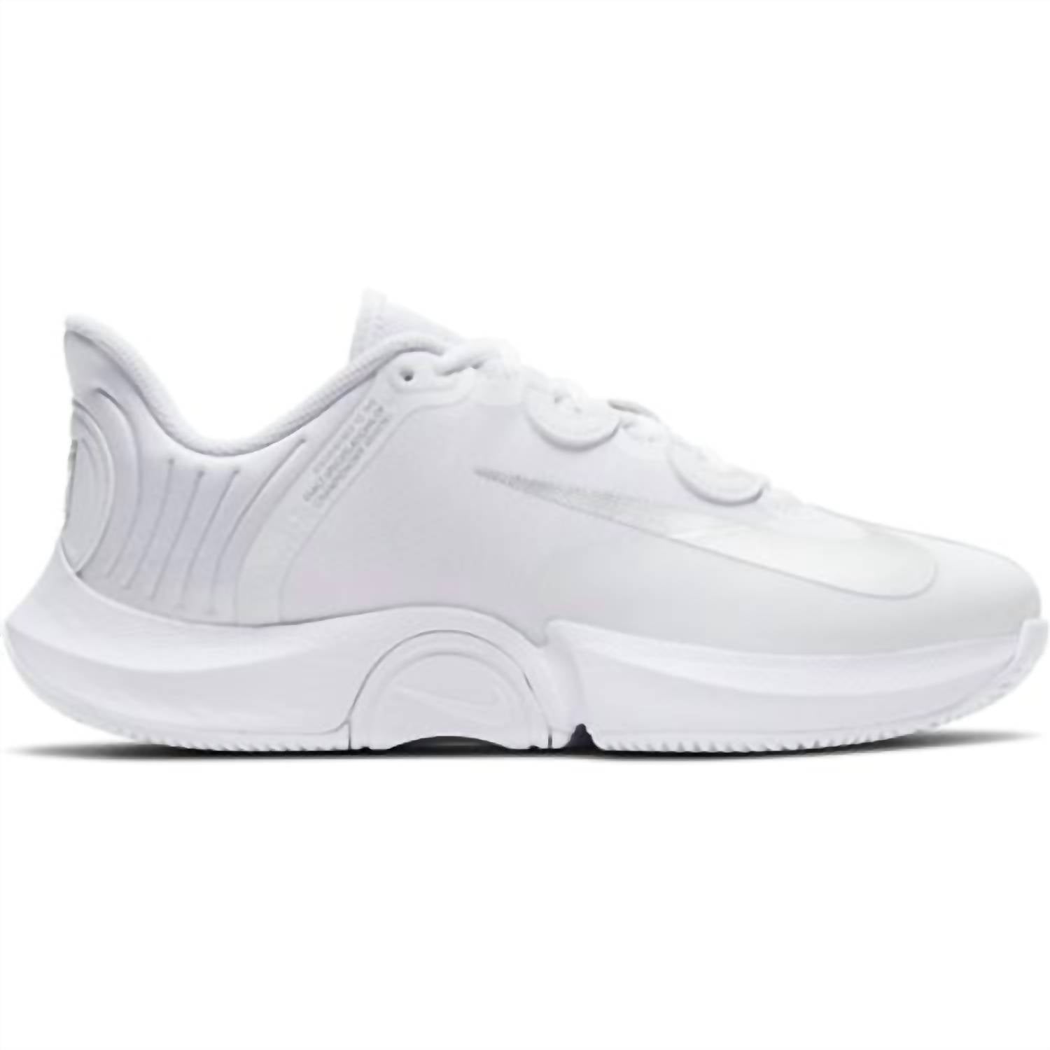 Stylish, comfortable and supportive. These athletic sneakers check all of the boxes. Experience unmatched performance with the Women's Air Zoom GP Turbo Shoe from NIKE, crafted for the dynamic tennis player. Featuring a full-length Zoom Air unit stitched directly to the upper, it delivers outstanding responsiveness with every step. Designed in a sleek white and metallic silver, this shoe ensures breathable support with a translucent textile, while the reinforced anatomically-designed toe box enhances durability. Originating from China, these athletic shoes are ideal for swift movements on the court.