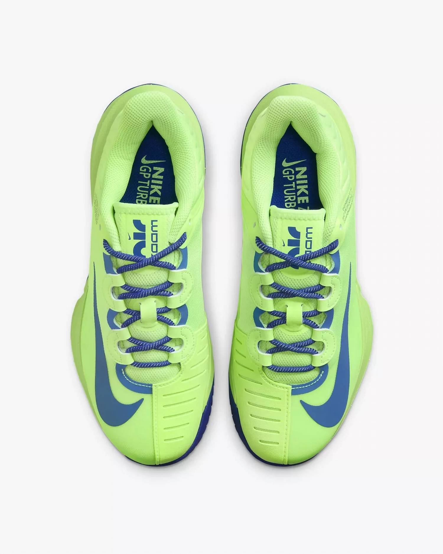 Elevate your tennis game with the Women's Zoom GP Turbo Osaka Shoes by NIKE, perfect for athletes who demand both style and performance. These shoes feature a low-top design and regular sole, ensuring comfort and agility on the court. The flat heel and round toe offer a classic sneaker silhouette, while the lacing closure provides a secure fit. Available in an eye-catching Lime Blast/Indigo Force/Noise Aqua colorway and crafted in China, these shoes are a stylish, reliable option for tennis enthusiasts.
