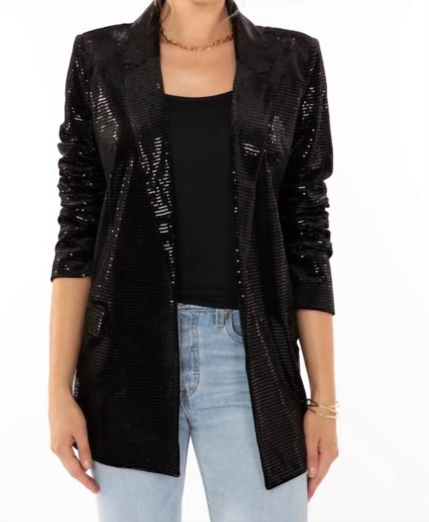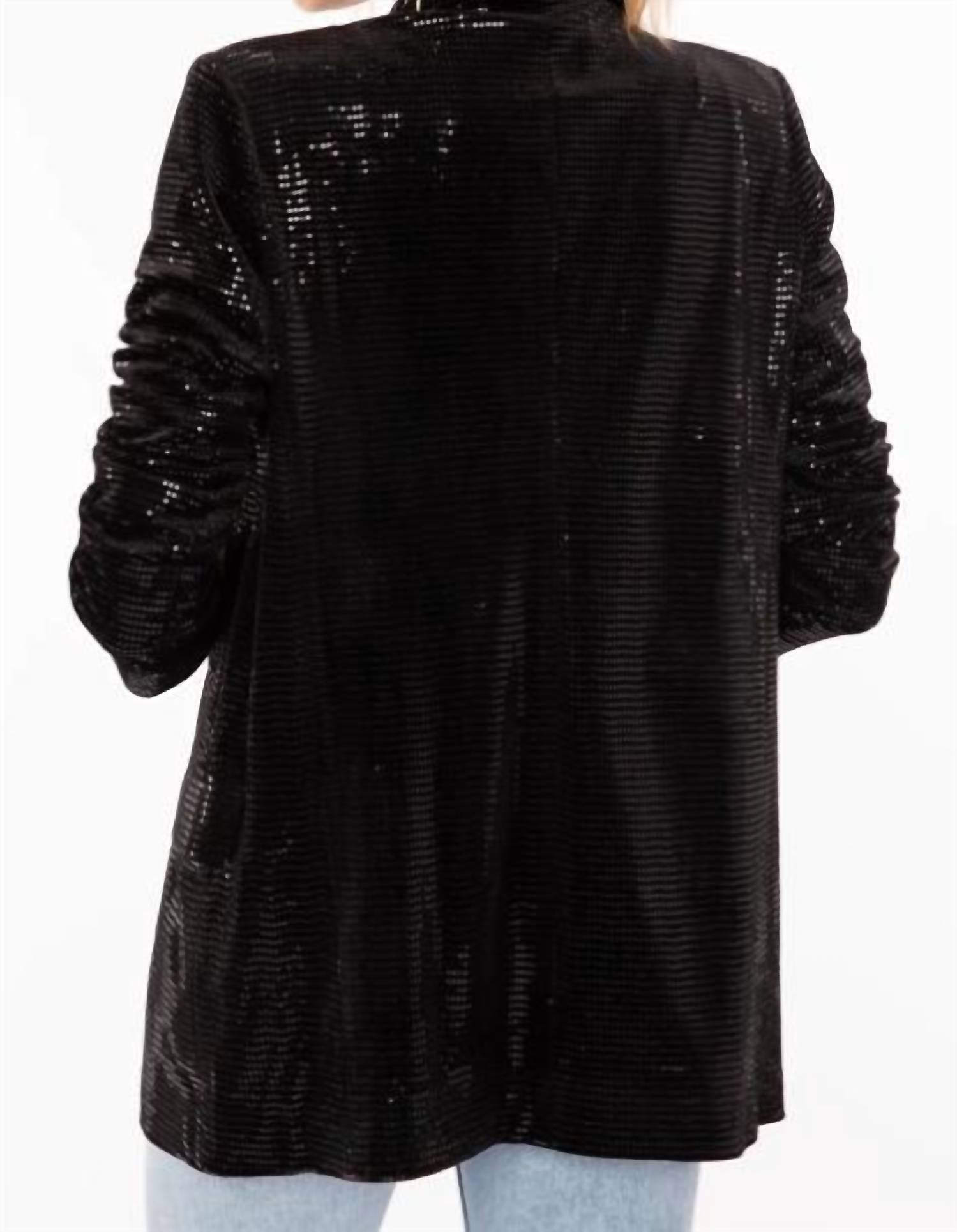 A blazer so versatile you can wear it to the office or pair it with jeans for a more casual look. It's blazer season, The Steal the Night Blazer is crafted from a statement making velvet fabric with a touch of sparkle.