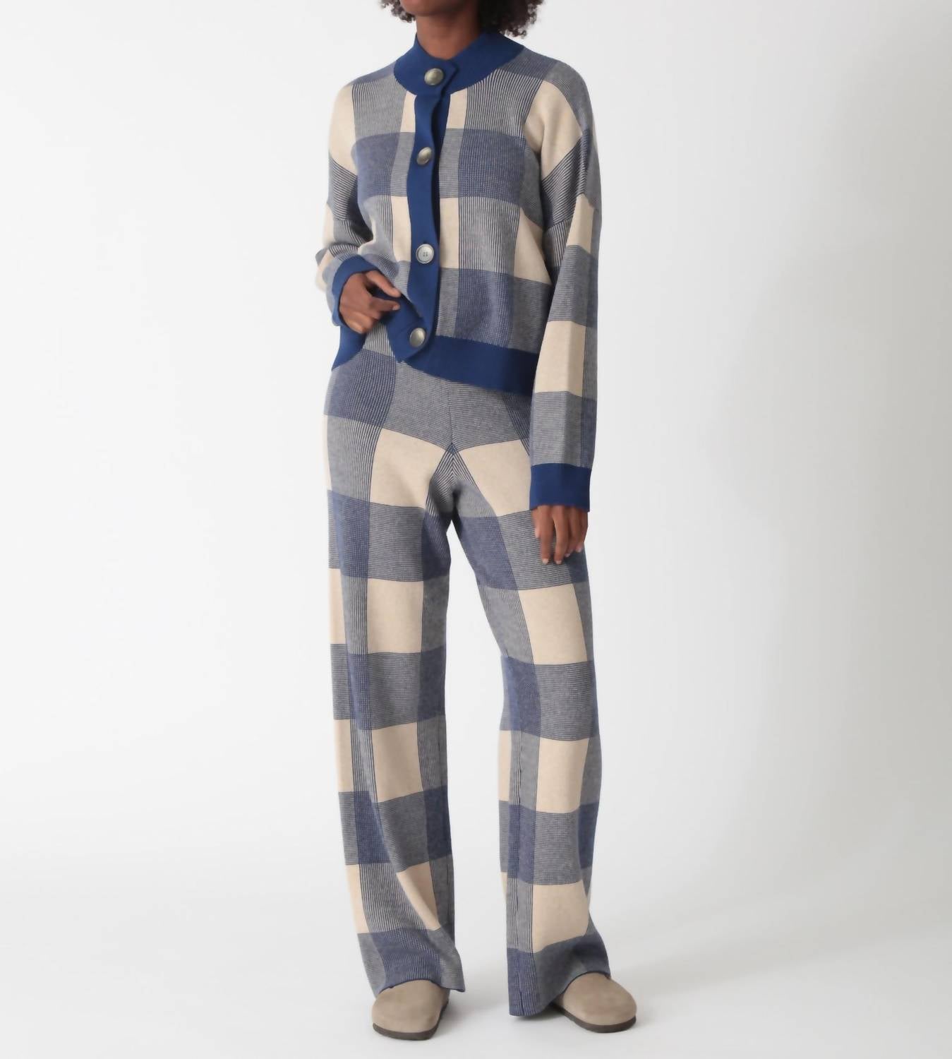 Throw this adorable cardigan over any cami or tank top. Upgrade your closet with the Rudi Cardigan by Electric & Rose, a blend of comfort and style tailored in an eye-catching Plaid Indigo/Sand. This women's cardigan features long sleeves and a cozy crewneck, crafted from 95% Cotton, 5% Cashmere for ultimate softness. Closure: Pull on. Care instructions suggest dry cleaning to maintain its pristine condition. Perfect for your fall vacation, it effortlessly captures the 90s fashion trend.