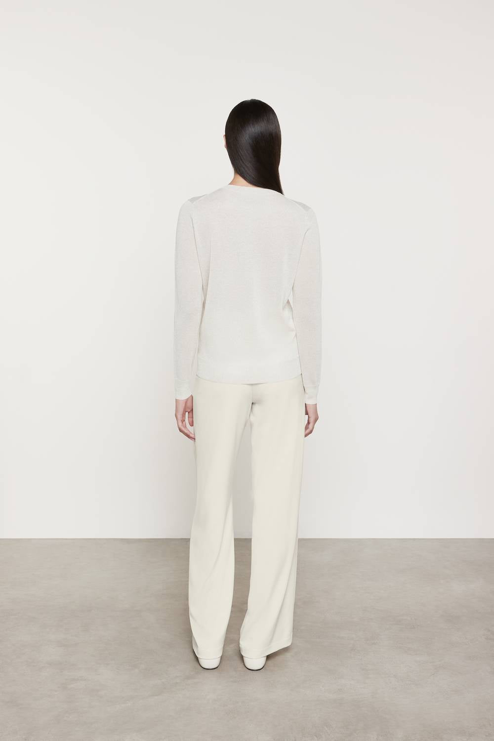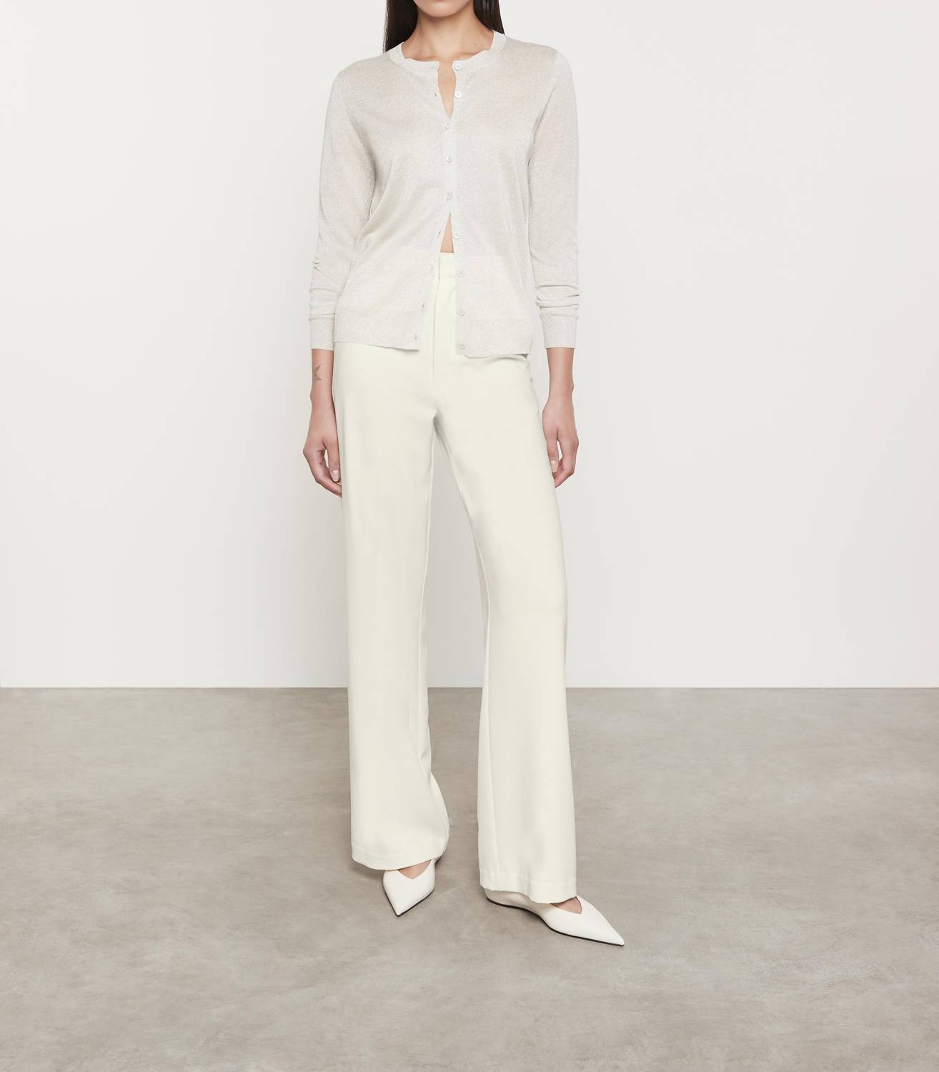 Crafted from a lightweight blend of viscose and metallic yarn, the Lame Cardigan features a classic crew neckline and delicate buttons down the front. A versatile layering piece for the Holiday season.