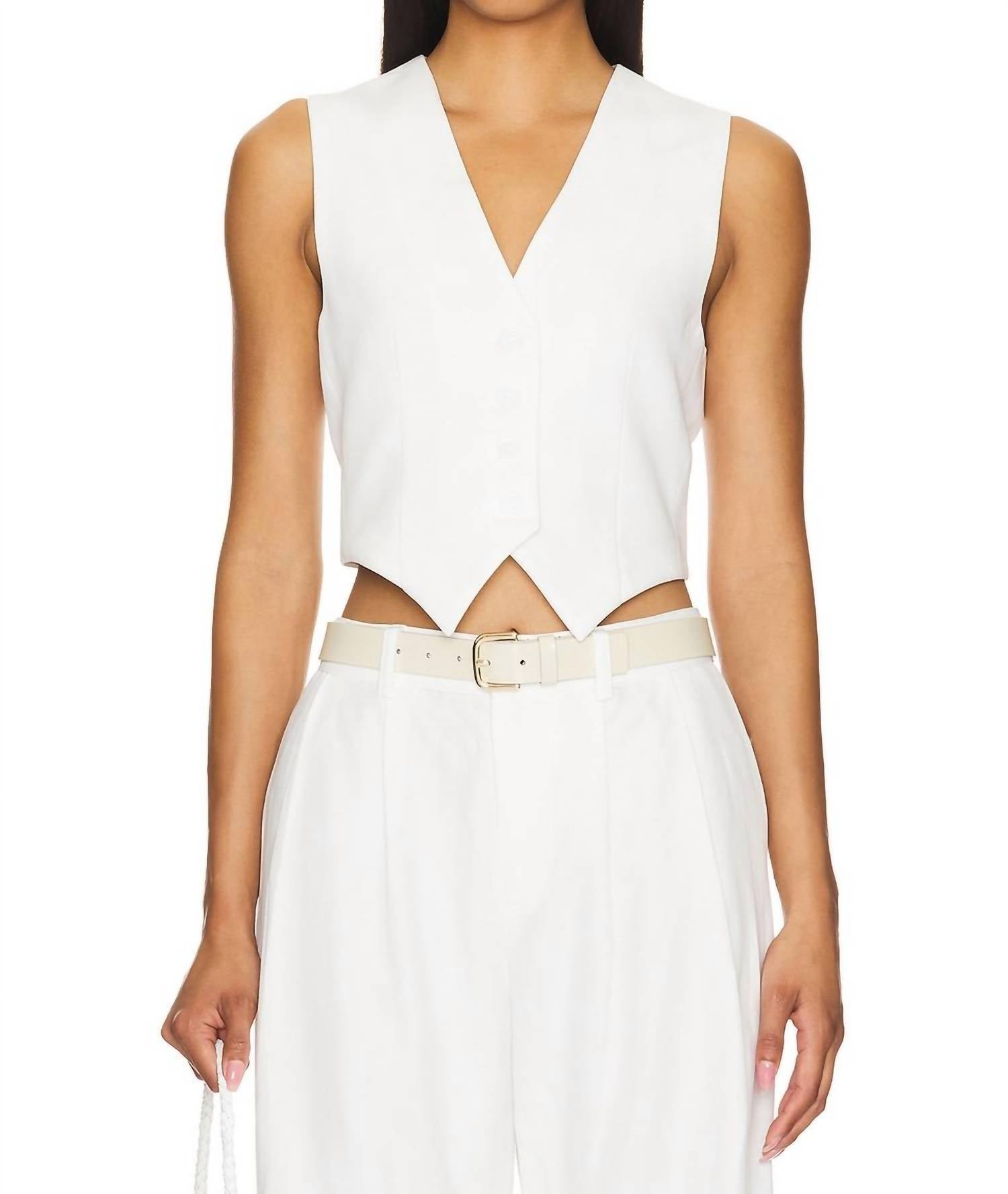 Throw this vest over an all black outfit for a perfectly polished look. Introducing the Women's Twill Vest by Enza Costa, a minimalist essential you'll love wearing to evening events. Crafted from a sophisticated linen blend, this sleeveless vest in chic off-white features a flattering V-neck and a neat button closure. Made in the US, it showcases a solid pattern for versatile styling. Care instructions recommend machine wash to keep it pristine.