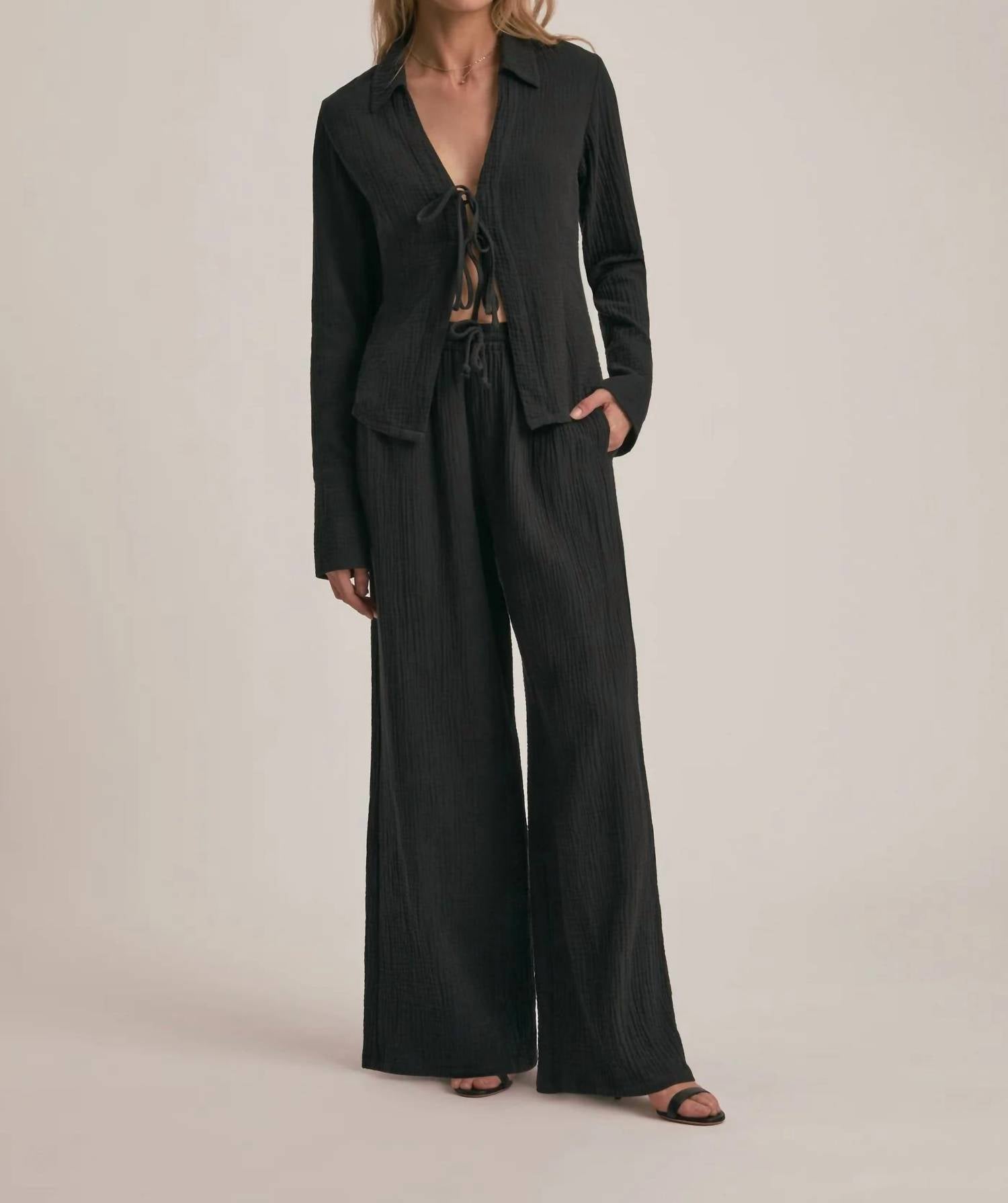 The Tied and True Top by Favorite Daughter combines style and comfort in a breezy cotton gauze design, perfect for spring. With its relaxed fit, long sleeves, and a pointed collar, this black solid top serves as a versatile staple in any wardrobe. 100% Organic Cotton. Tie closure. Machine wash, line dry.