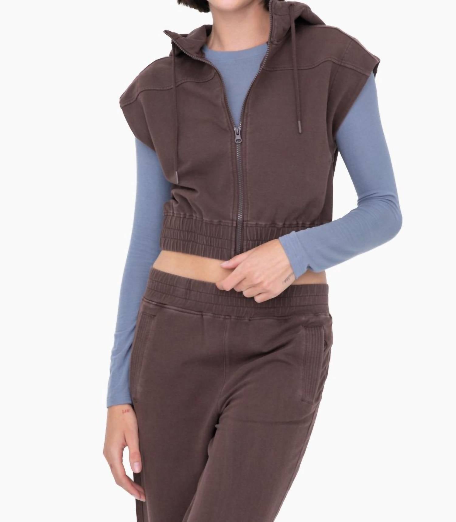 A vest so versatile you can mix and match it with almost any outfit and it will feel brand new every time.This Dark Brown Mineral Washed French Terry Hooded Vest is made with ultra-soft French terry fabric. Its comfortable fit and classic aesthetic promise effortless style, making it a great addition to any wardrobe.