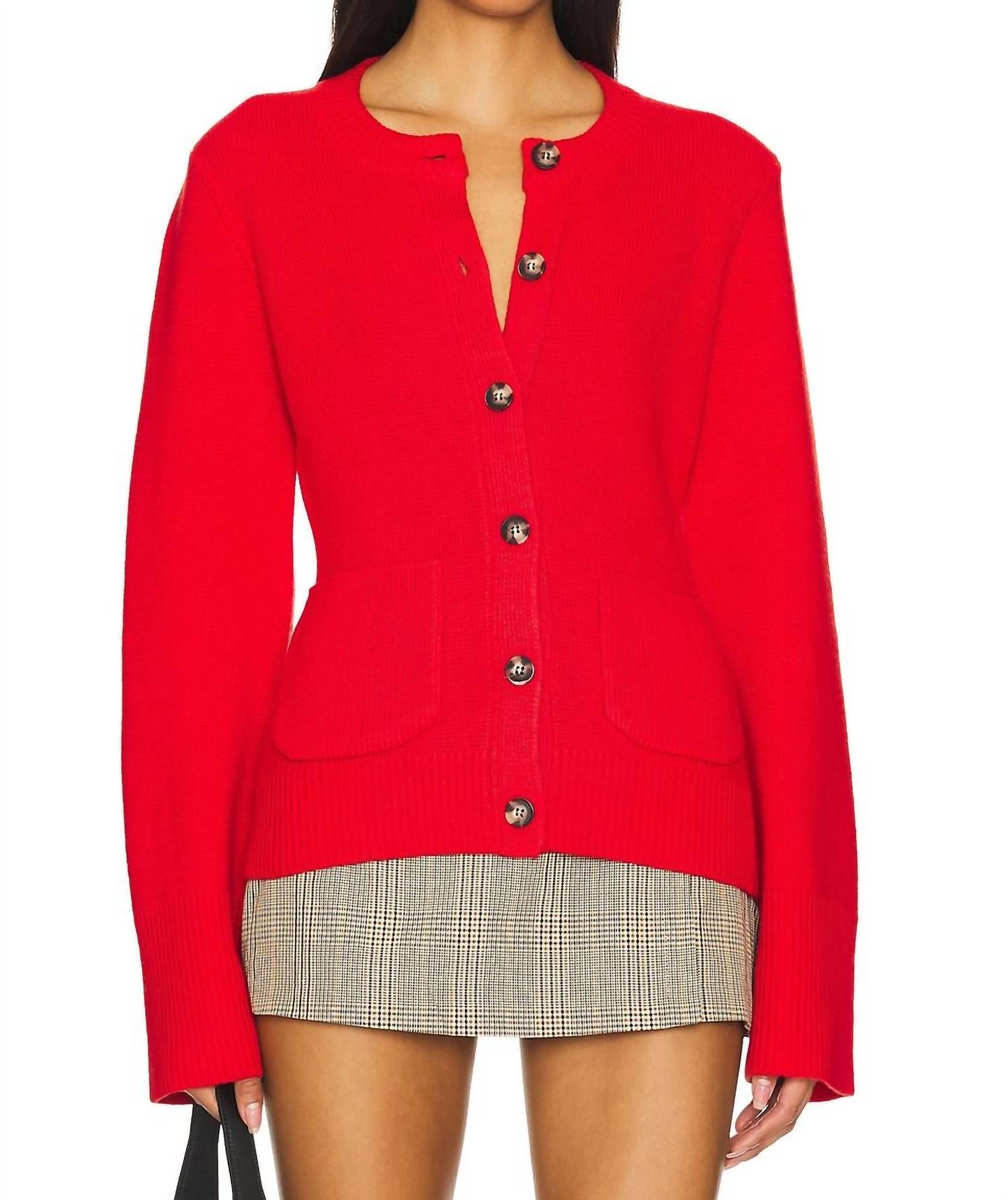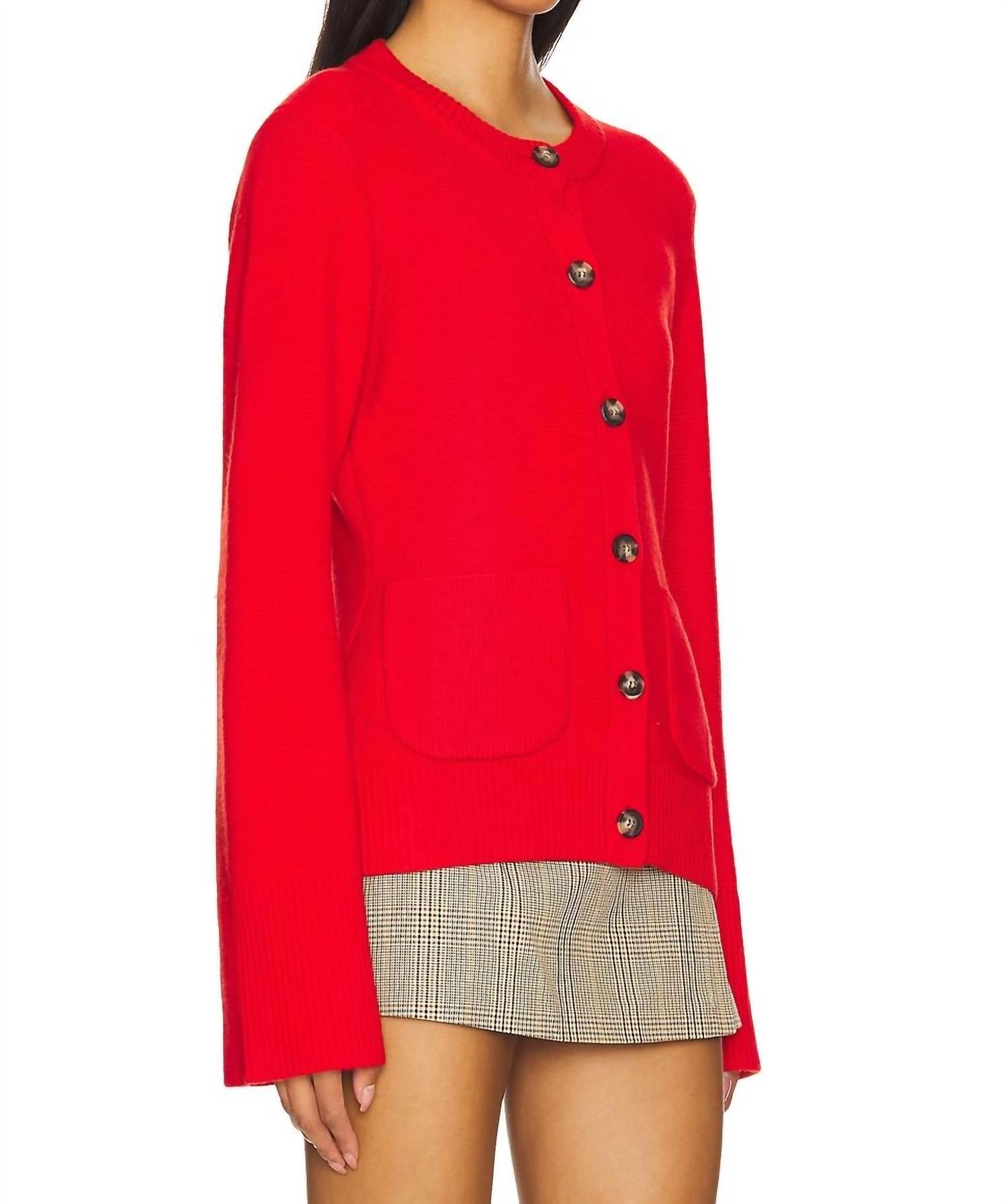 This cardigan will be a sweater-rotation favorite. Embrace the festive spirit with the Dani Cardigan by Pistola, a medium-weight piece in a vibrant red that's perfect for the holiday season. Crafted with long sleeves and featuring a crew neckline, this cardigan offers a subtle, cinched waist fit for a flattering silhouette. Composition includes 35% nylon, 30% wool, 30% cotton, and 5% cashmere, ensuring both warmth and comfort. Made in China, this cardigan features a front button closure and dual front pocket styling for added convenience. Care for this solid, preppy trend piece with ease by machine washing.