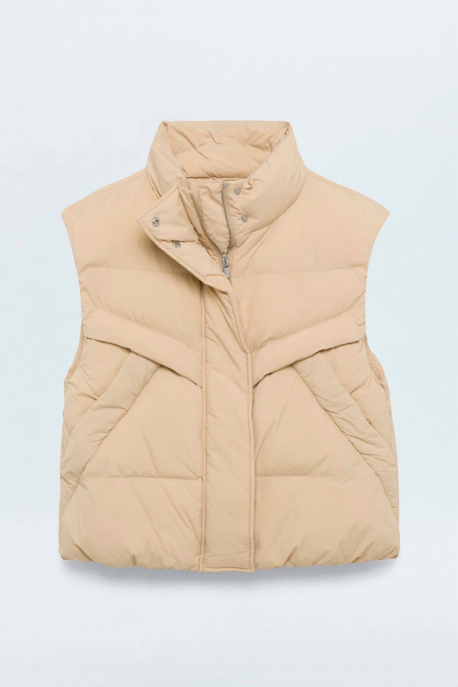 Meet the Joss Quilted Puffer Vest by PISTOLA, your stylish solution for staying warm and chic. This sleeveless vest in a beautiful Warm Sand hue is composed of Nylon and boasts a cozy 24-inch length. Designed with practicality in mind, it includes a secure zip closure, lined interior, and handy pockets. Care involves dry cleaning to maintain its impeccable look.