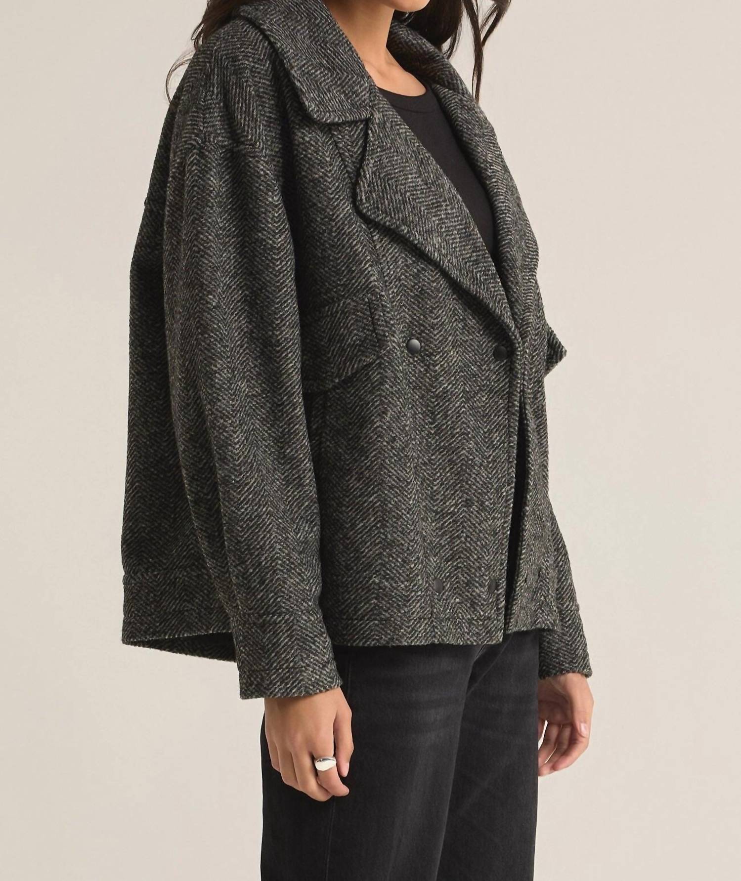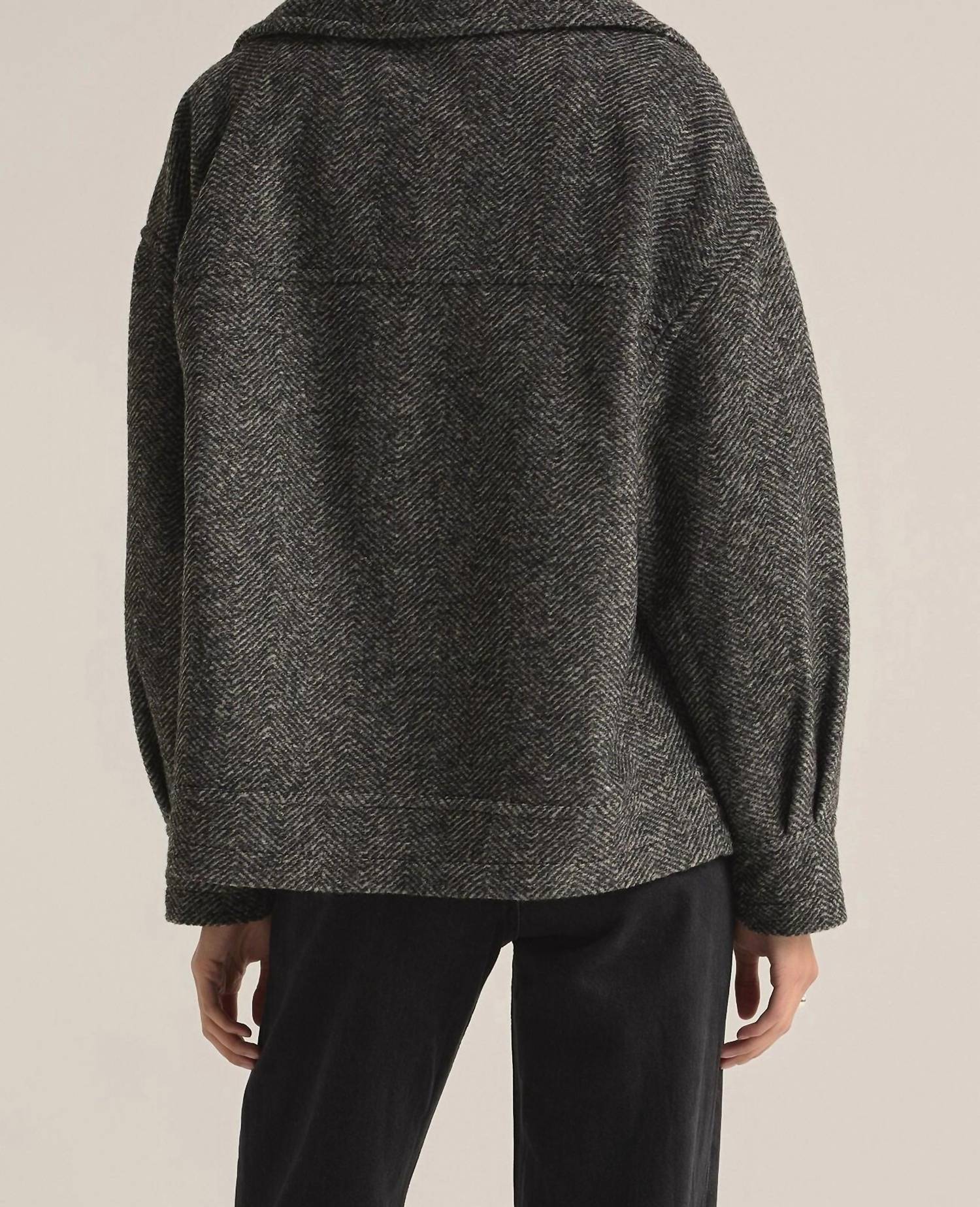 That extra layering piece you didn't know you needed! Introducing the Ari Herringbone Coat by Z Supply, crafted in a sophisticated Charcoal Heather hue for ultimate winter style. Featuring long sleeves and a wide notch collar, this coat offers a relaxed fit with a dropped shoulder design and boxy cut. Made from heavyweight herringbone boucle, its durable shell and comfortable lining are both 100% polyester.