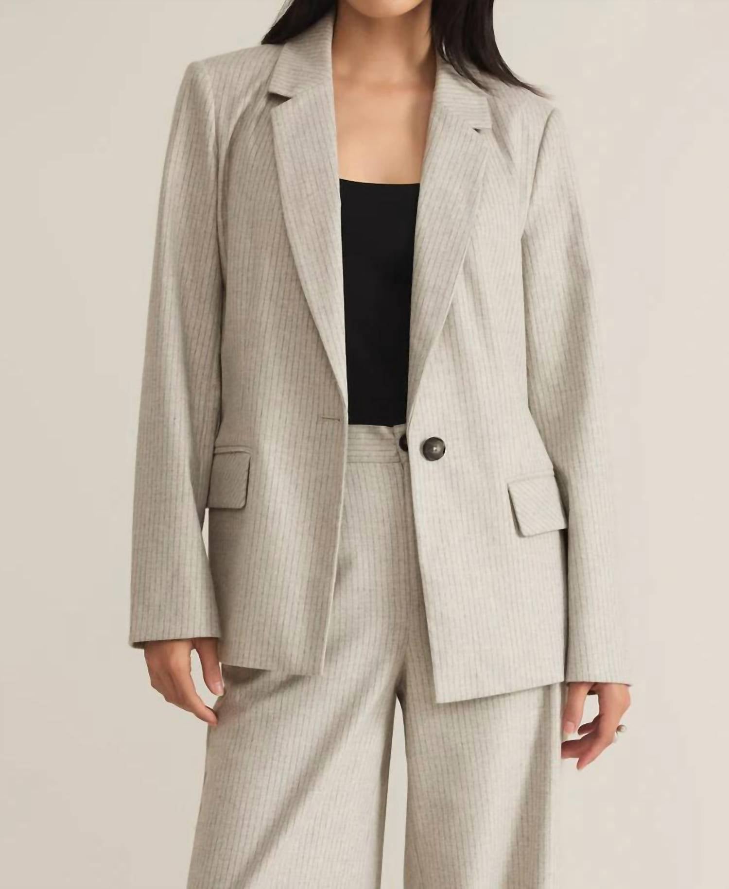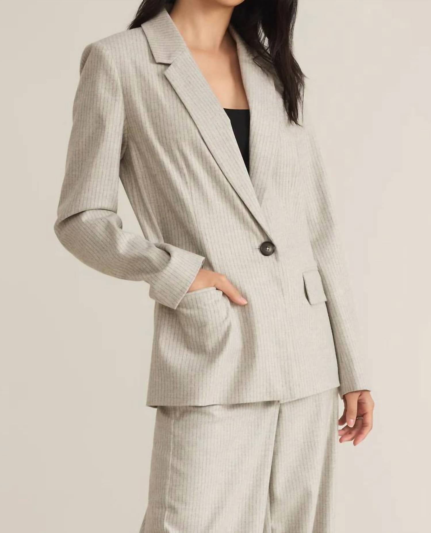 An elevated version of your favorite classic blazer. Designed with long sleeves and a classic collar neckline, it features a tasteful stripe pattern for an elegant touch. This blazer is crafted from durable polyester and includes practical pockets, making it both functional and stylish. With button closure. Dry clean only.