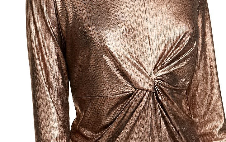 V-neck | Approx. 25-3/8" long | Metallic finish; twist detail at front waist