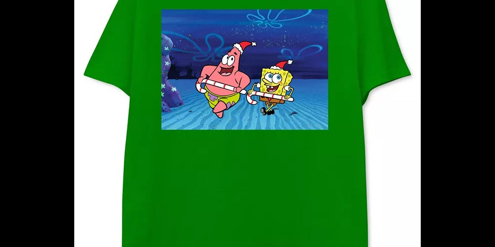Freeze 24-7 Men's Spongebob & Patrick Christmas T-Shirt Green Size Medium