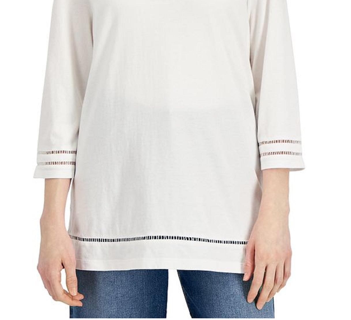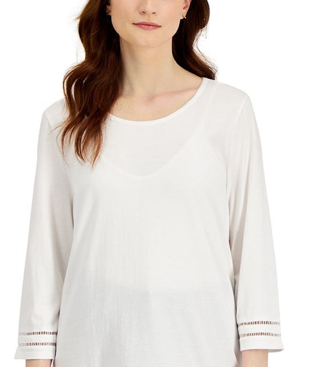 Long and easy| this relaxed Karen Scott top is in soft jersey with lattice trim that updates your look|